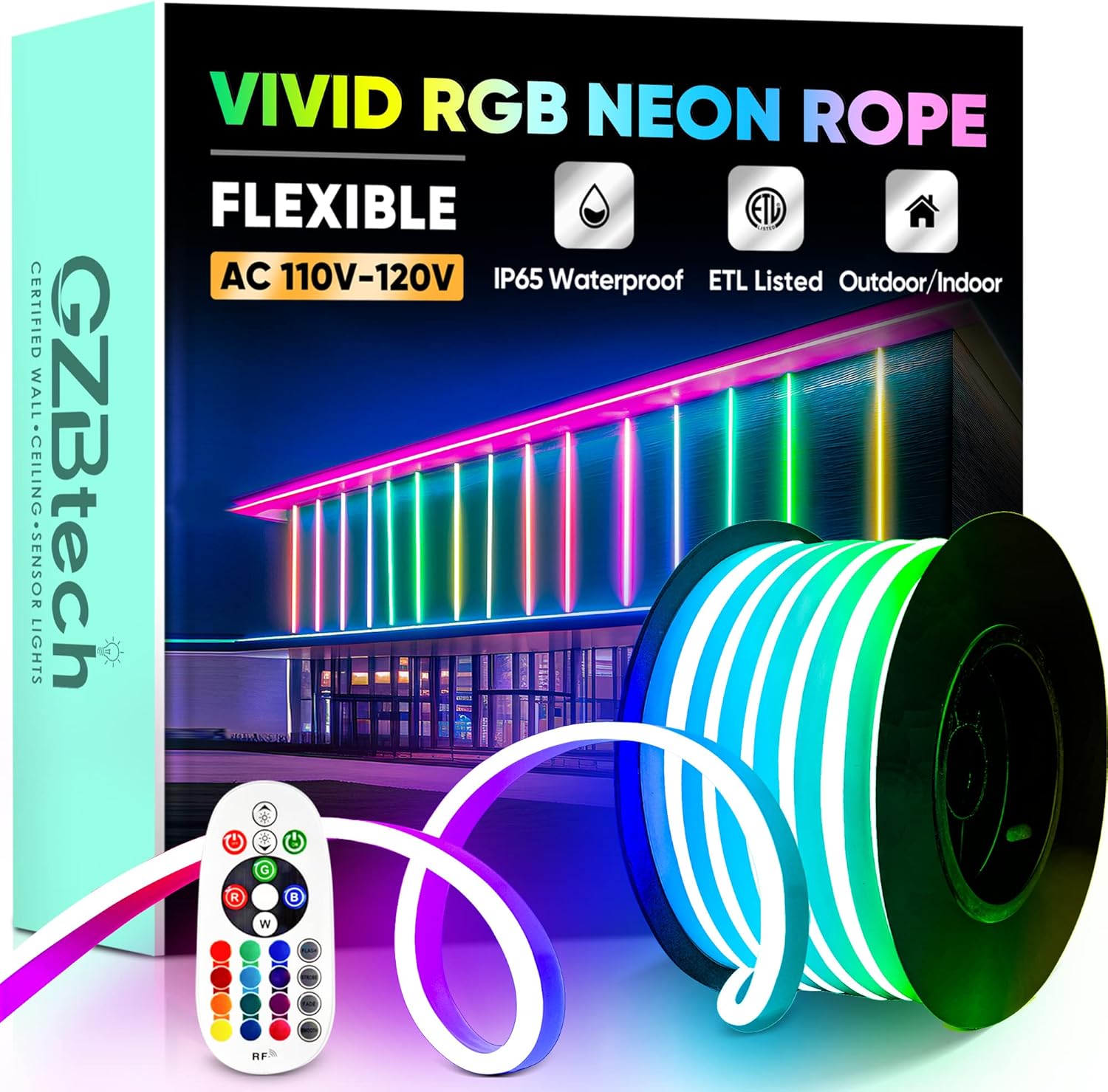 - Flexible & Water-resistant--GZBtech outdoor waterproof led strip lights are flexible and you could easily bend it for shapes you want. IP65 water resistant coating makes this rope light the best choice for both indoor and outdoor decoration. Ideal for both home and commercial lighting decoration, holidays and festivals.