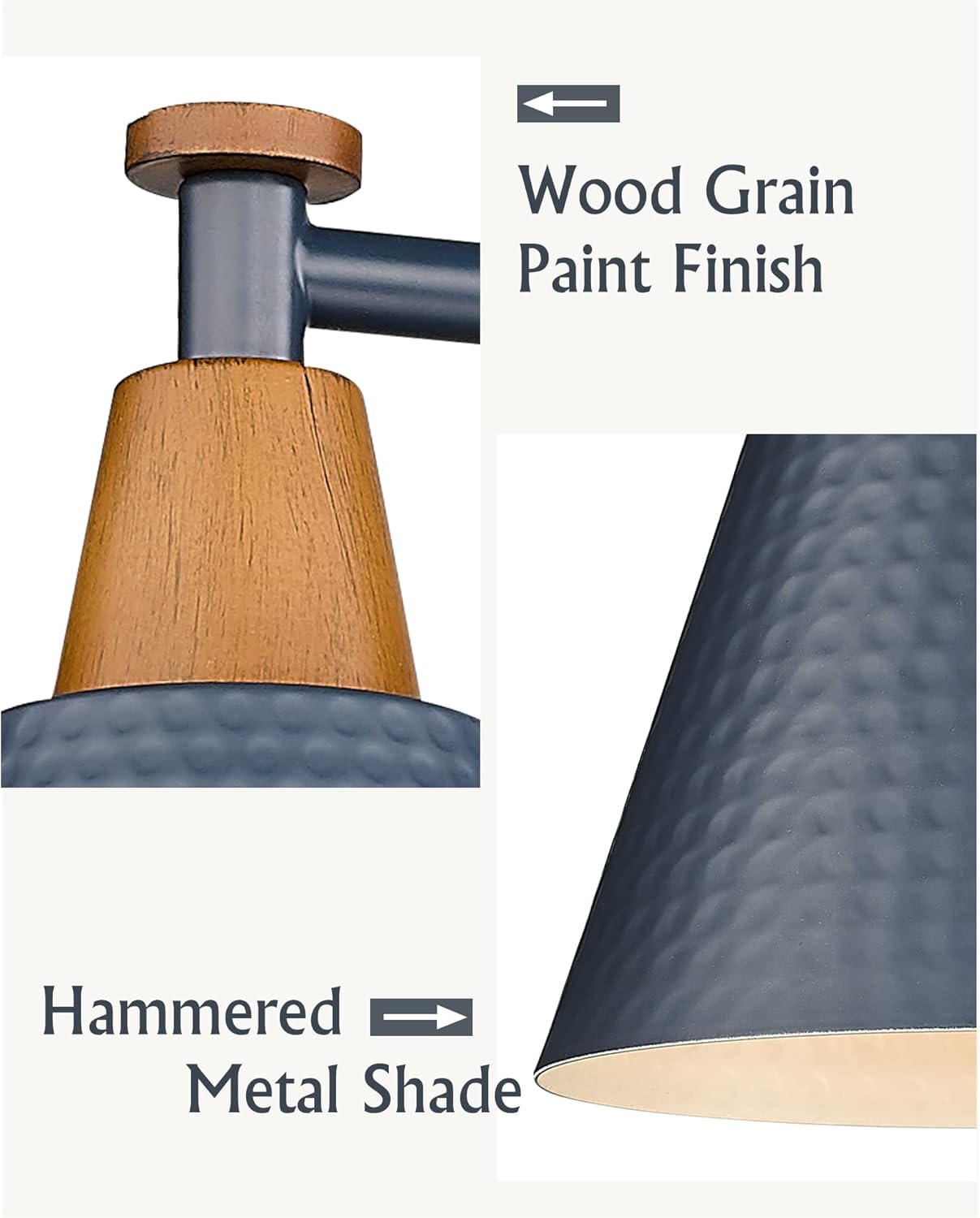 FEMILA 4-Light Bathroom Light Fixtures, Farmhouse Modern Vanity Lights Wall Lamp with Hammered Metal Shade Finish, Dark Blue, 4FG59B-4W Blue