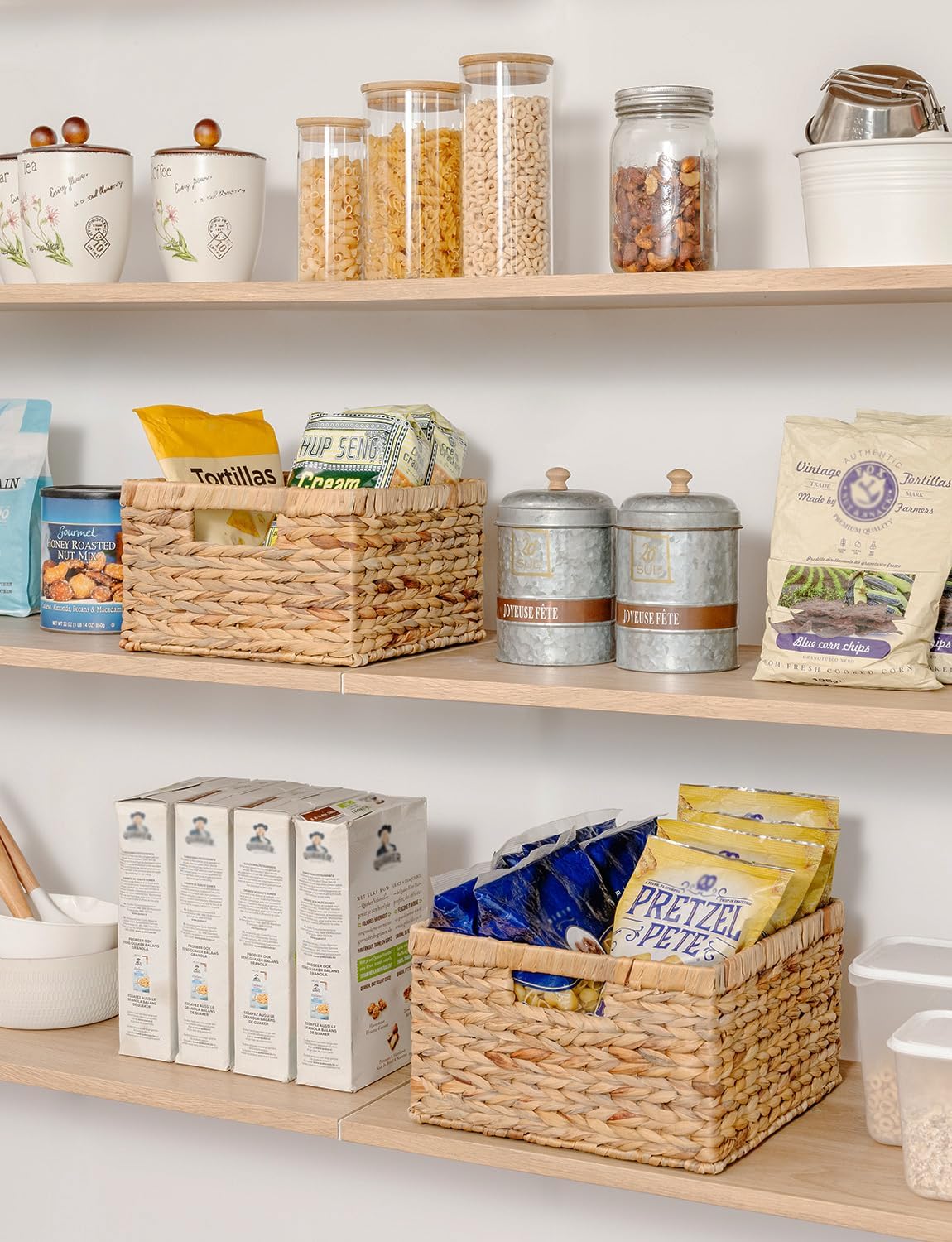 - Handwoven Craftsmanship: Handwoven by skilled artisans with tight, even braiding, each pantry basket offers a neat, elegant look that showcases its high-quality craftsmanship.