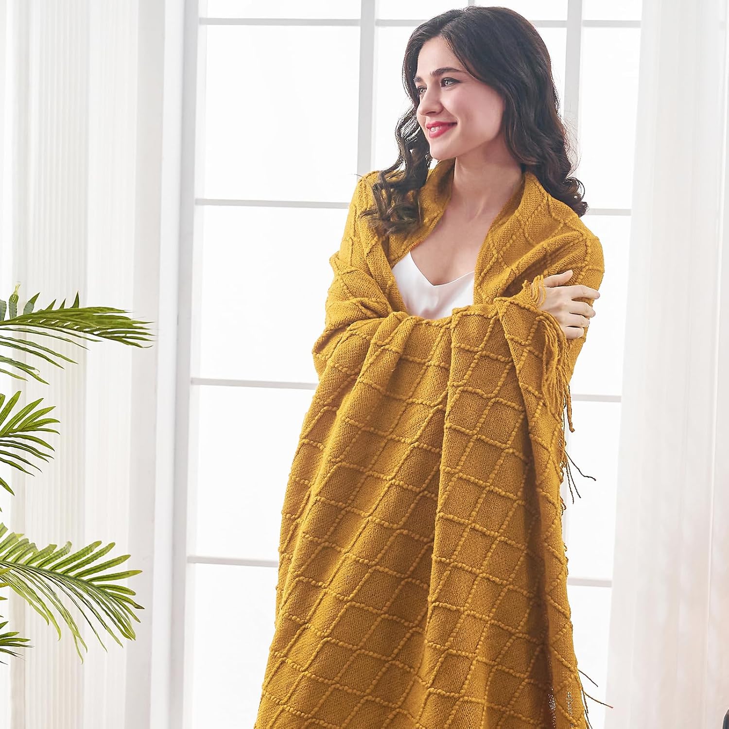 - 【GIFT IDEAS】: Special knitted diamond patterns add a unique accent to your room and people draping it as a shawl. Very suitable for tasteful homeowners. Throw blanket for women, classic but not too tacky as a housewarming gift. Tips: Due to different lighting, display settings, or resolutions, the difference in color happens. We are dying to show the color. To do so, one of the images shows the color difference in different lighting. Hope these instructions would help you to buy a throw.