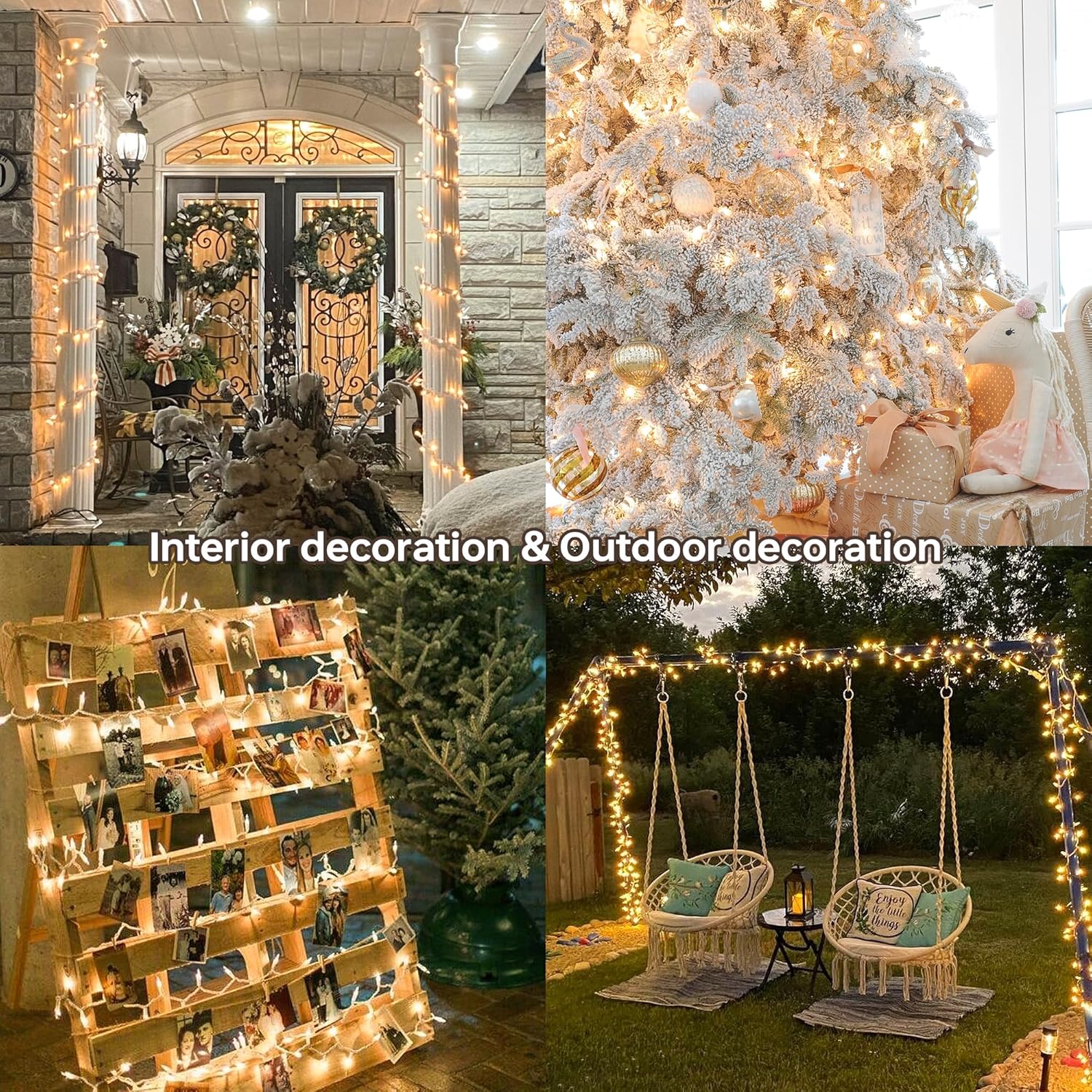 - ✅Connectable Christmas Decoration Lights:Equipped with a male and female plug, you can freely connect up 5 strands end-to-end to reach a length of 115 feet.Then decorate your lighting area with any required length.Meet your application needs in various scene.These fairy plug in lights can easily customized and creates a romantic festive atmosphere.