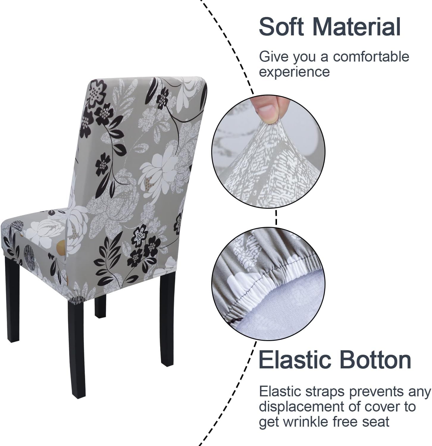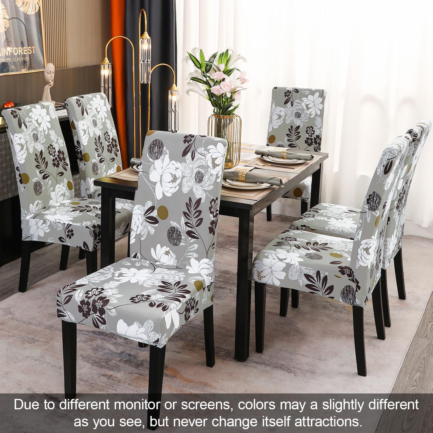 JQinHome Chair Covers for Dining Room Set of 6, High Stretch Removable Washable Parsons Chair Slipcover for Home Party Hotel Wedding Ceremony (Flower,6PCS)