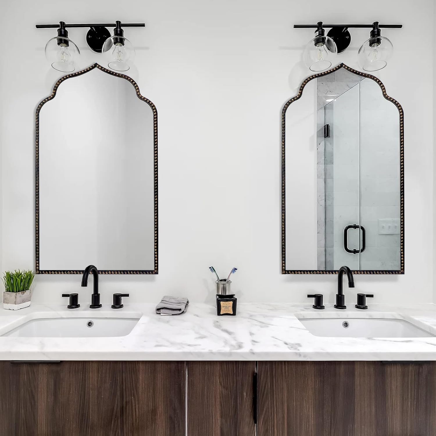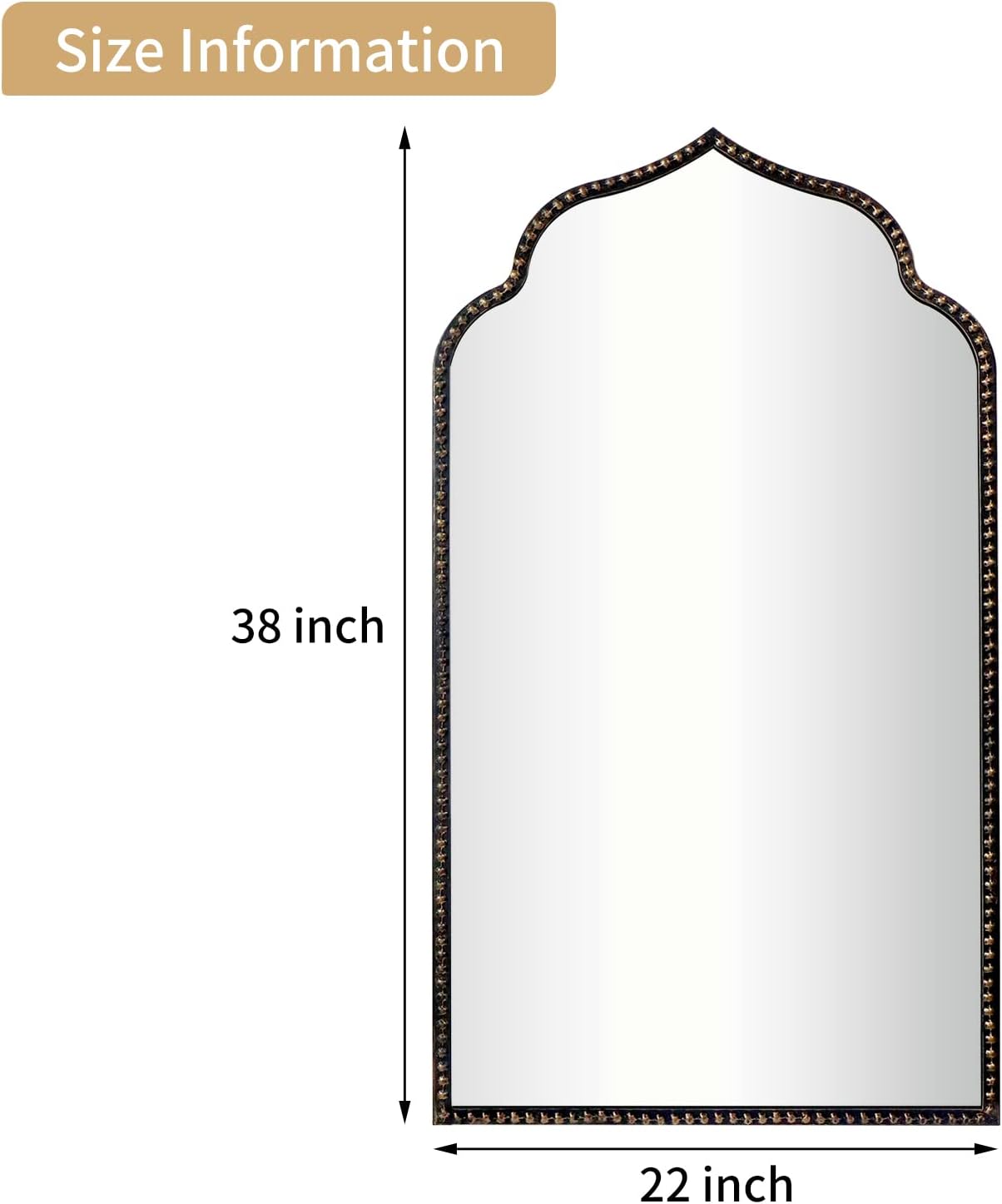 - Unique Design: Wall-mounted mirror features a Moroccan-inspired arch. Metal beaded frame make it a focal point of elegance and sophistication in any room.