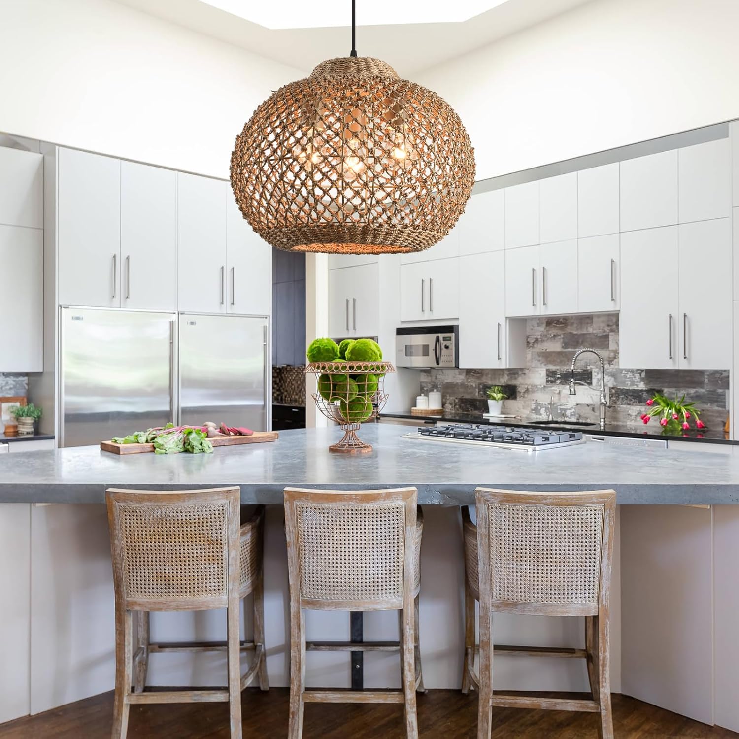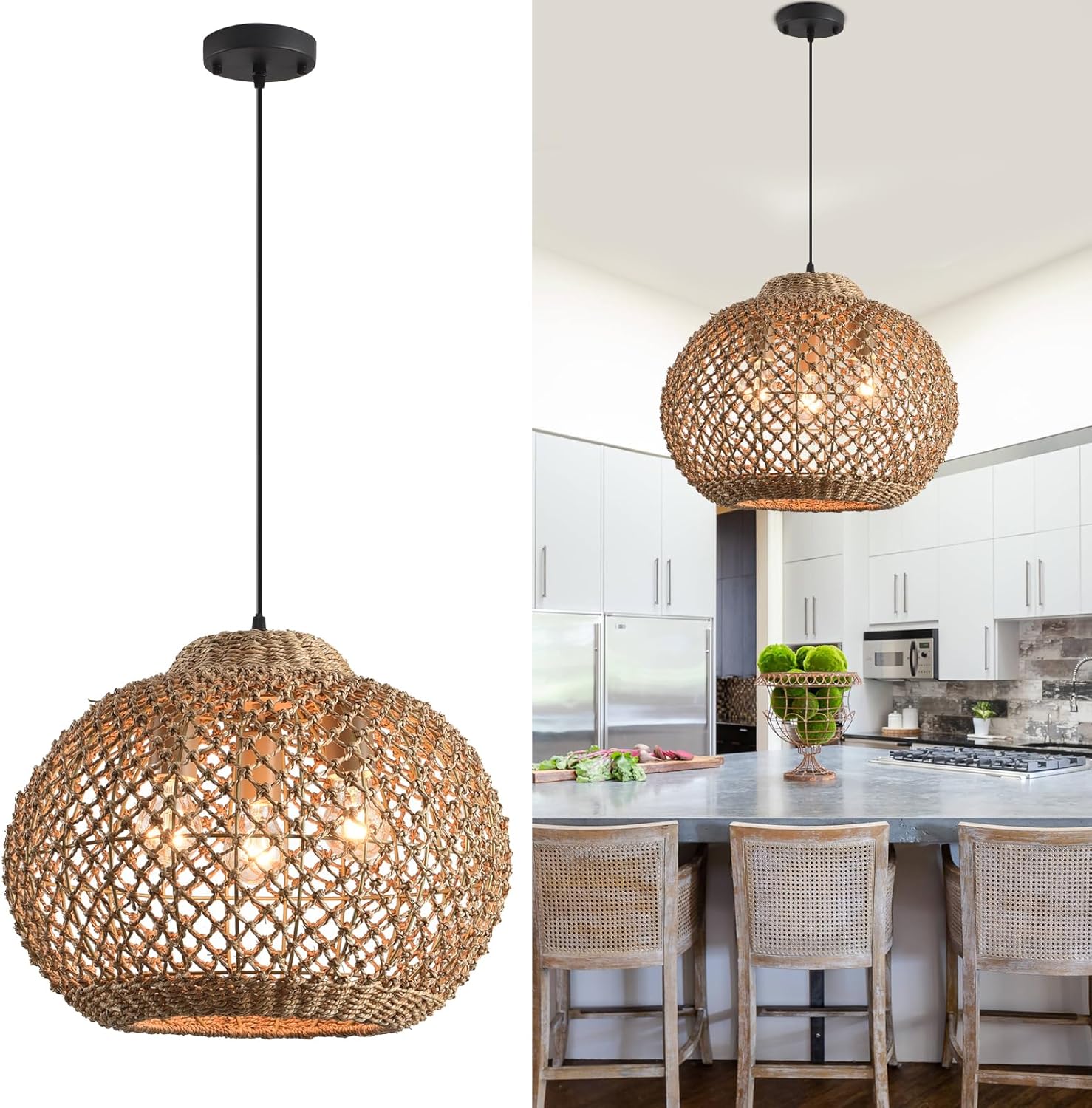- 【Excellent Design】Natural water plants rattan weave craft, the pendants are made of natural materials. The lights are hand woven with by rattan craft superb skills Seagrass artists. Decorated with classic tropical style elements, creates a wonderfully new look