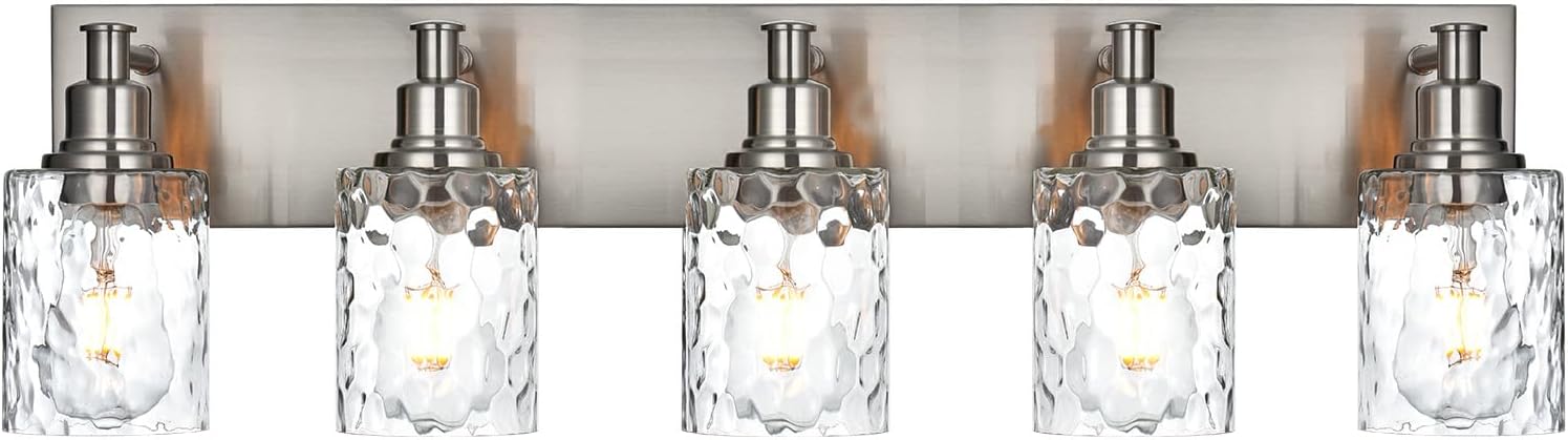 BONLICHT 5 Lights Sconces Wall Lighting Brushed Nickel with Hammered Glass Shade, Industrial Bathroom Light Fixtures Vanity Lights Porch Light Fixtures Classic Metal Wall Mount Lamp Over Mirror