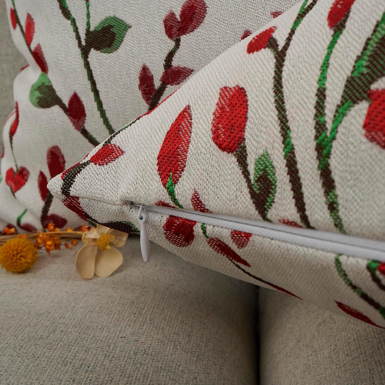 YOUR SMILE Christmas Red Classical Embroidery Jacquard Teal Leaf Pattern Square Decorative Throw Pillow Case Cushion Cover 18 x 18 inch