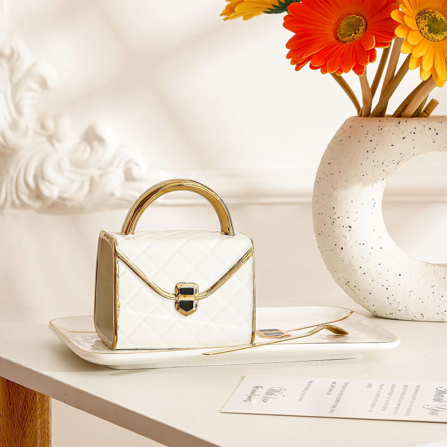 - Delicate Coffee Mug Set: the package comes with 1 piece of handbag shaped white mug and it is equipped with a spoon and saucer, which is thoughtful set for your daily use; They are well packaged in a gift box, reading for your gift giving needs