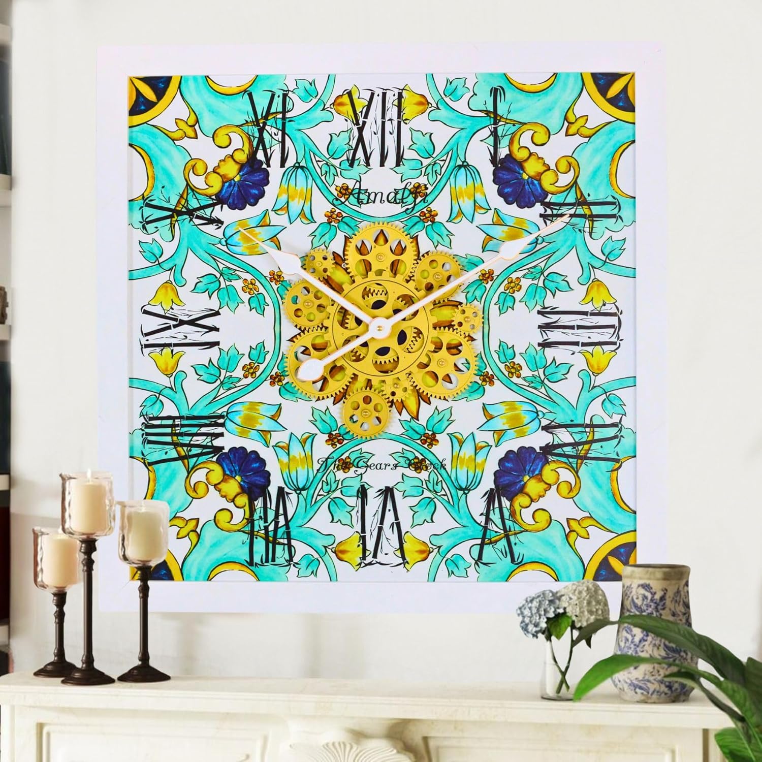 - Wall Clock Italy Collection with Real Moving Gears is an Art Timepiece inspired by the Famous Amalfi coast Tiles in Italy