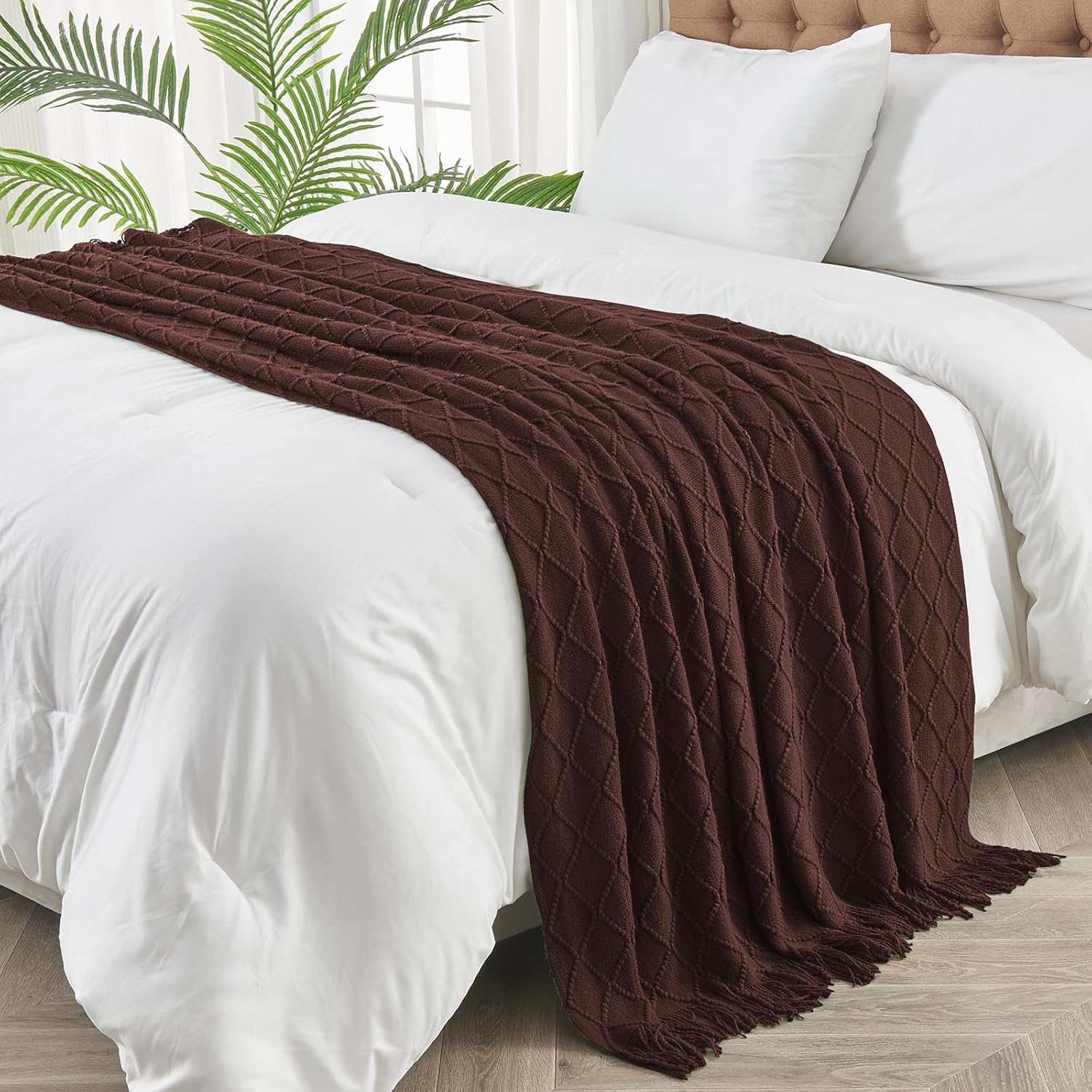 inhand Knitted Throw Blankets for Couch and Bed, Soft Cozy Knit Blanket with Tassel, Diamond Brown Lightweight Decorative Blankets and Throws, Farmhouse Warm Woven Blanket for Men and Women, 60"x80"