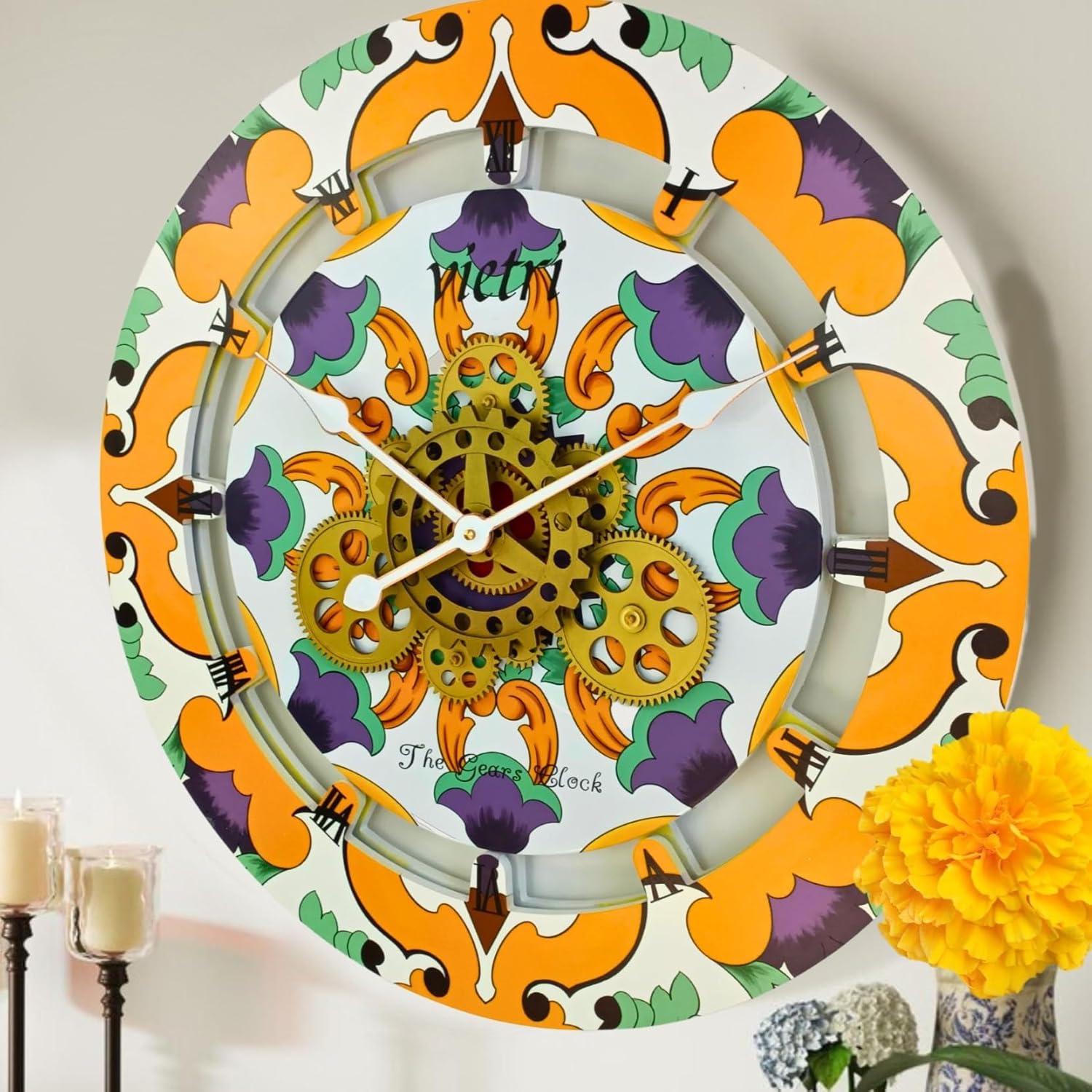 The Gears Clock Wall Clock Italy Collection with Moving Gears (Vietri, 24 inch Round)