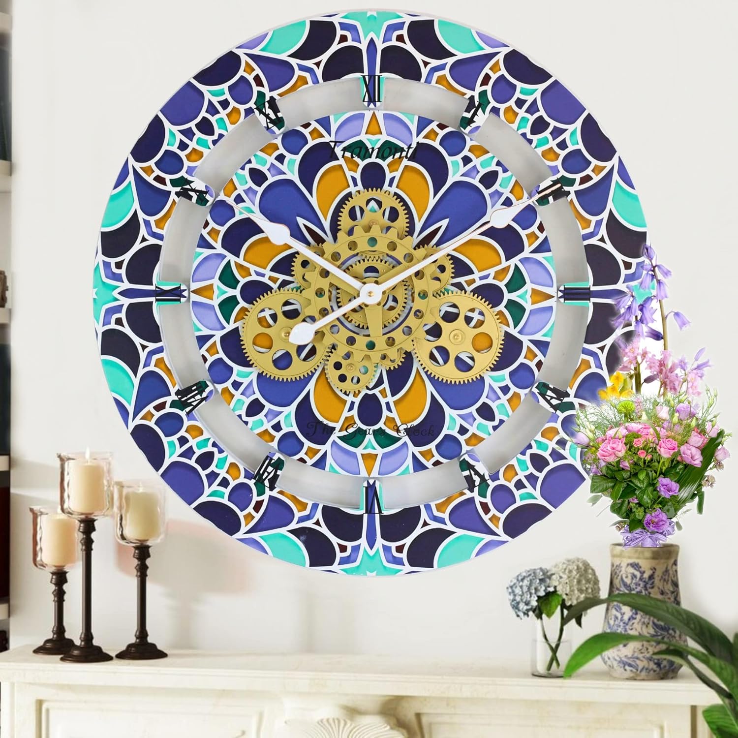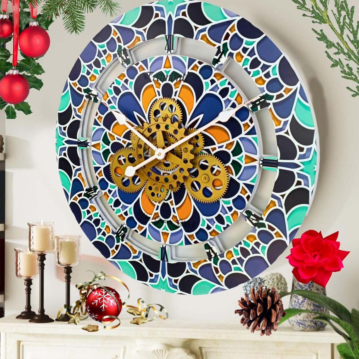 The Gears Clock Wall Clock Italy Collection with Moving Gears (Tramonti, 24 inch Round)