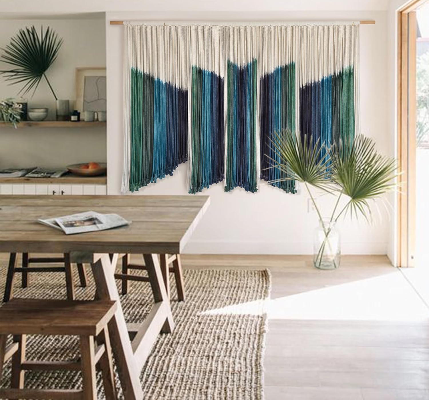 IOWER Macrame Wall Hanging Dip-Dyed 59" Wx37 L Craftsmanship Fiber Yarn Wall Art Boho Macrame Wall Decor