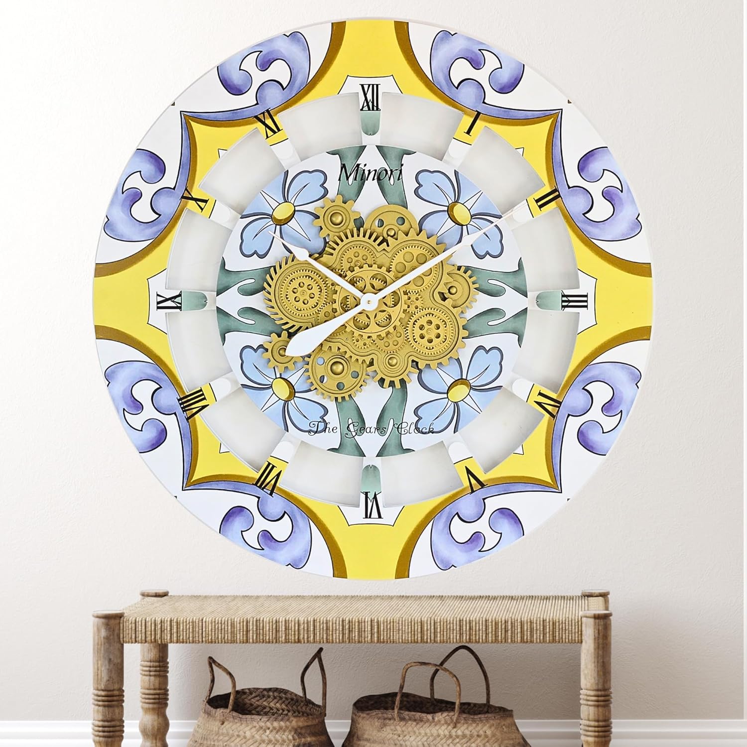 - Wall Clock Italy Collection with Real Moving Gears is an Art Timepiece inspired by the Famous Amalfi coast Tiles in Italy