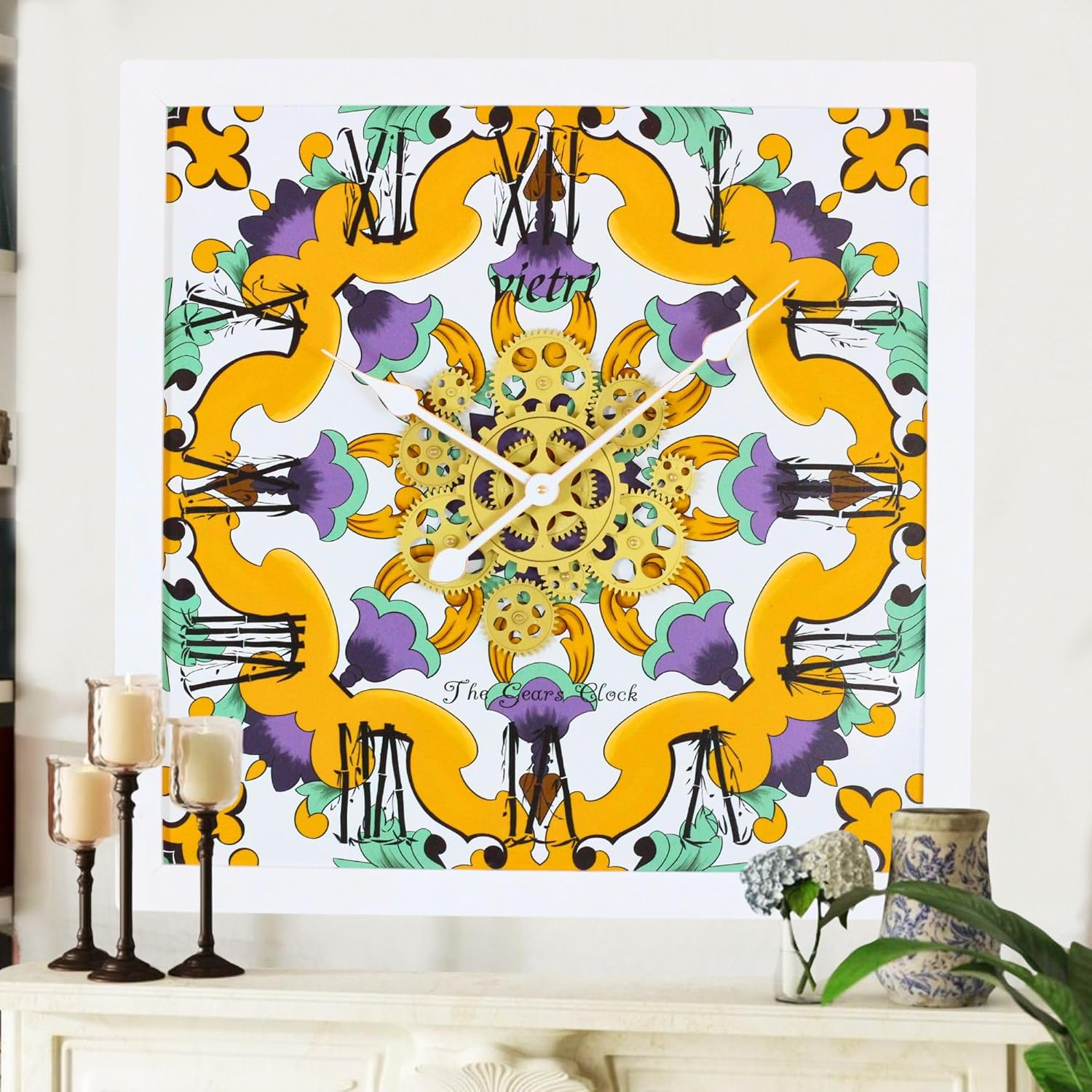 - Wall Clock Italy Collection with Real Moving Gears is an Art Timepiece inspired by the Famous Amalfi coast Tiles in Italy