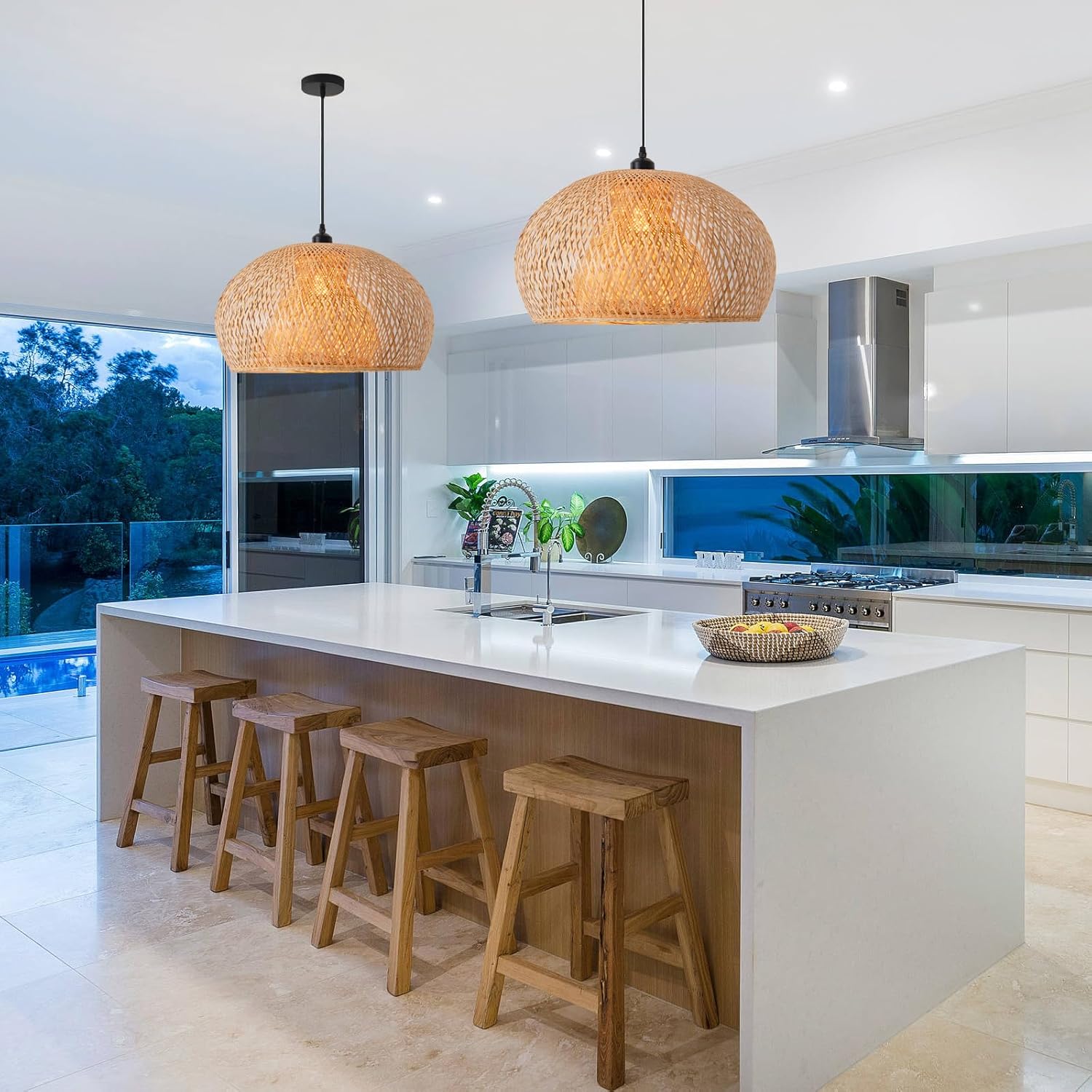23.6" Bamboo Pendant Light Hand-Woven Rattan Hanging Lamp Boho Bamboo Chandelier for Dining Living Bedroom Kitchen Farmhouse