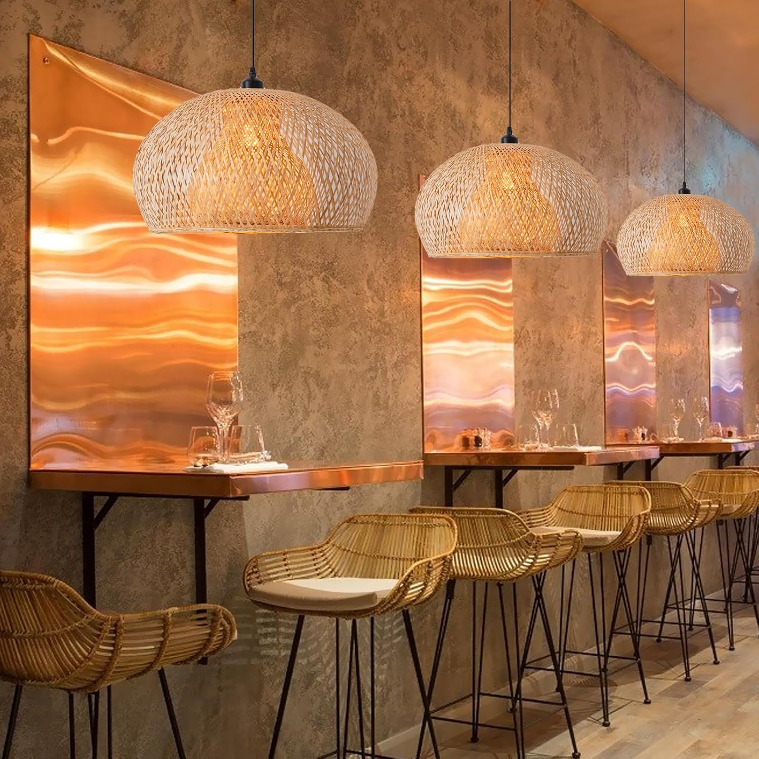 - 【UNIQUE DOUBLE-LAYER DESIGN】This pendant is made of natural bamboo. It adopts a double-layer design and is shaped like a bowl. When the light is transmitted through the wicker shade at night, the pattern it casts on the wall is very beautiful