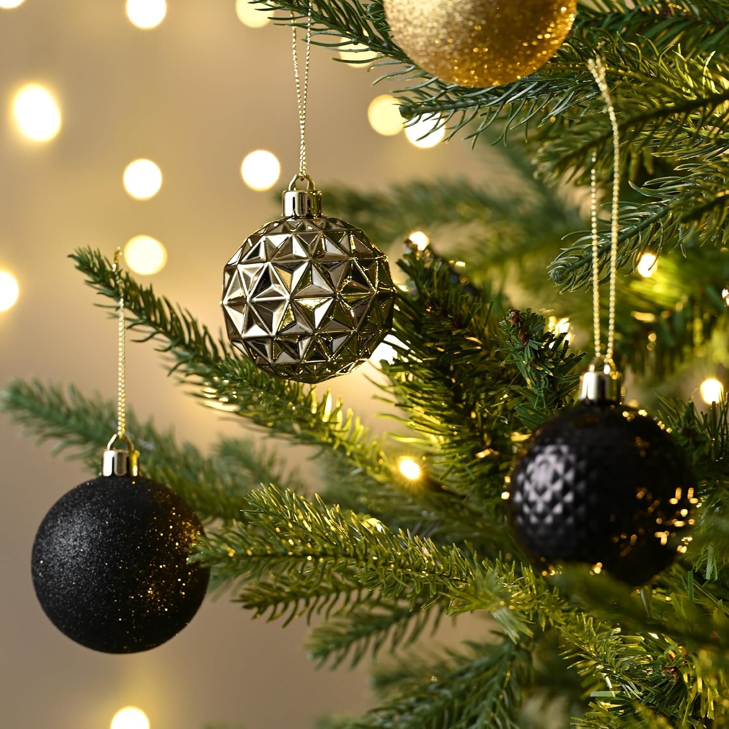 Valery Madelyn Christmas Tree Decorations Ornament Set for Fall Halloween, 50ct 2.36 Inches Black and Gold Shatterproof Christmas Ball Ornaments Hanging Xmas Holiday Party Decor