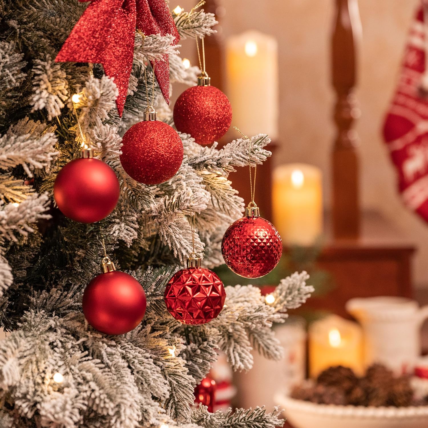 - 【Package and Size】This ornament ball set include 50pcs Christmas ornaments measuring 2.36 inches in diameter, featuring seamless connections for a polished look