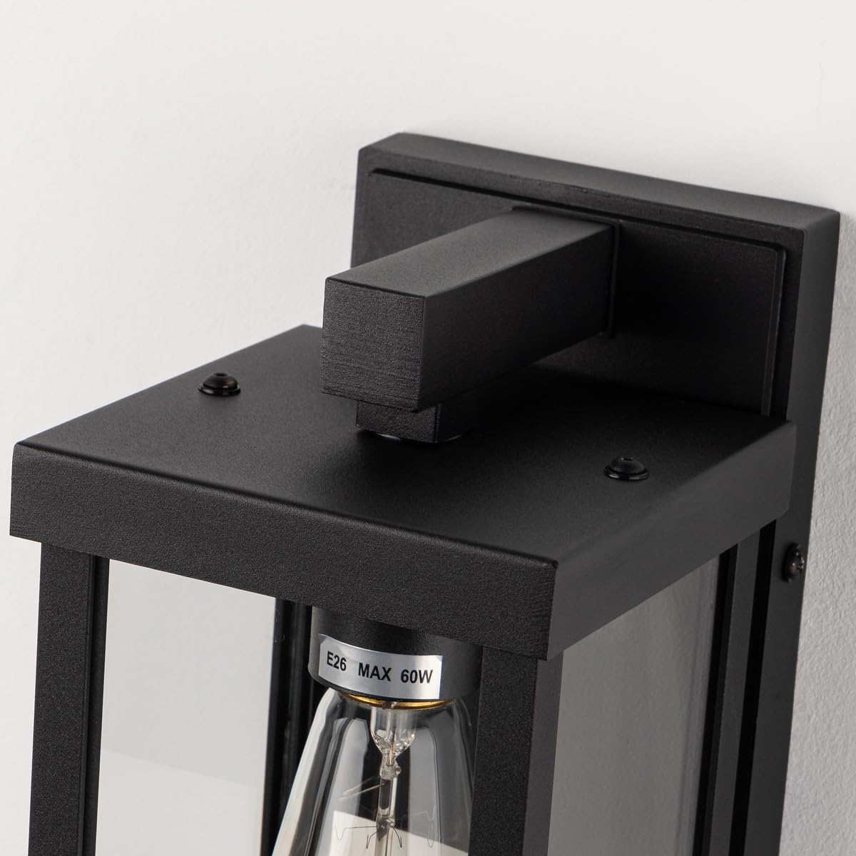 mirrea 11" Classic Outdoor Wall Sconce 1 Light in Matte Black Rectangular Metal Frame and Clear Glass Shade Waterproof Porch Light Patio Light Pack of 2
