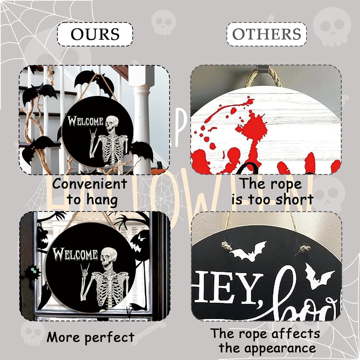 - Great Gift Idea: Present the Halloween Horror Welcome Sign for Front Door as a thoughtful gift for friends and family. Whether used as a wood porch decoration or door ornament, it injects a festive atmosphere into Halloween-themed birthday parties and celebrations.