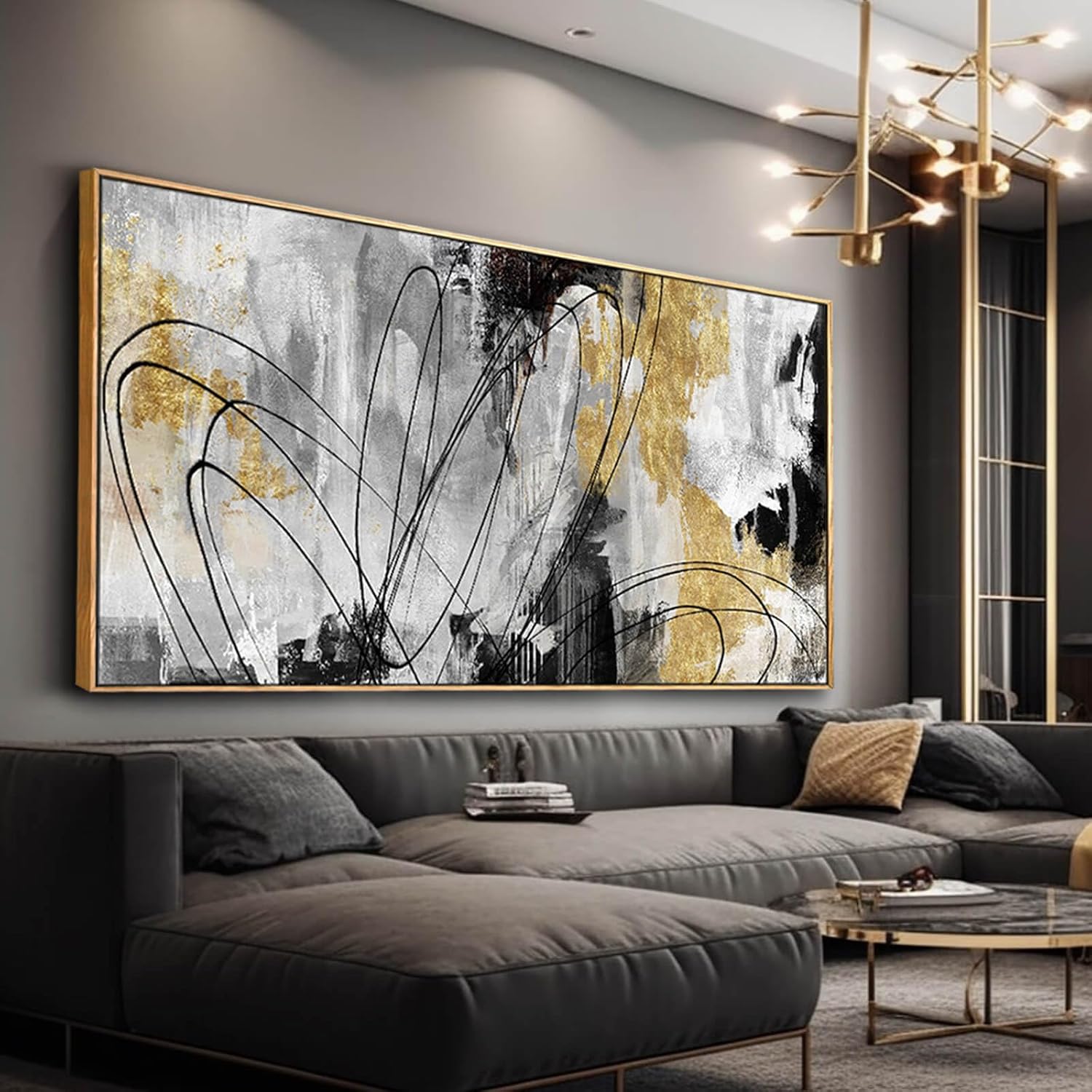 - Size and Package: Gold Abstract Painting measures approx 29x58 inches; Suitable size makes it a great seascape decor addition to your home. Easy to hang - All Signs Come With Pre-Installed Hooks.