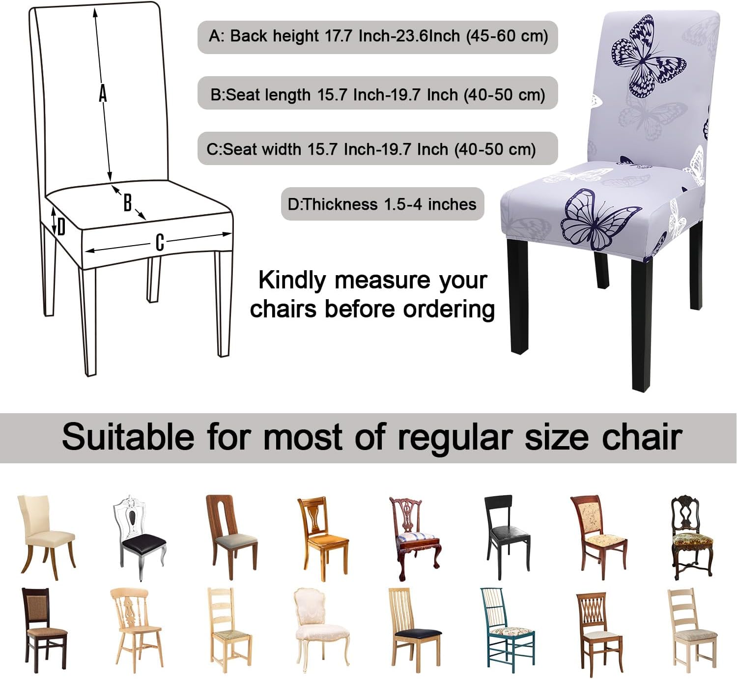 JQinHome Pattern Chair Covers for Dining Room Set of 6, High Stretch Removable Washable Parsons Chair Slipcover for Home Party Hotel Wedding Ceremony (Grey Butterfly,6PCS)
