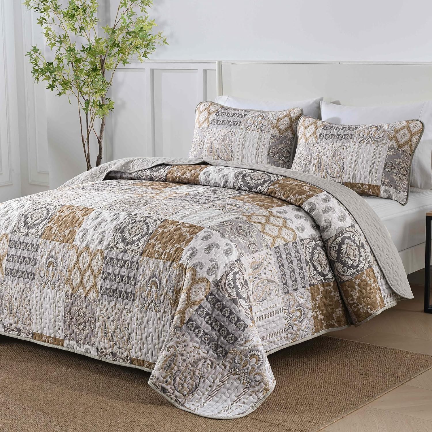 - SOFT MICROFIBER BEDDING SET: The cozy brown patchwork quilt king size bedding is made from high-quality microfiber, our quilt sets king is soft to touch, lightweight, and breathable. The firm stitch ensures long-lasting durability.