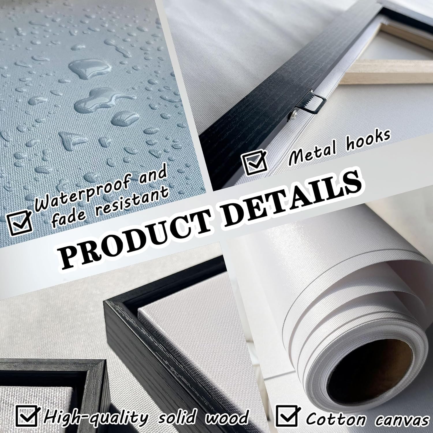 - PACKAGING:this canvas wall art is framed,the frames made with light wood,have black hooks and white nails,easy to hang.wrap in plastic wrapper and sealed in carton,protect the canvas picture.