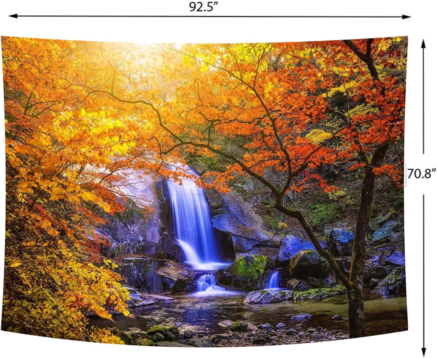 Delur Waterfall Tapestry Forest Nature Scenic Tree Mountain Sunset Tapestry Wall Hanging Natural Landscape Sunrise Headboard for Bedroom Living Room Home Decor (70.8" x 92.5")