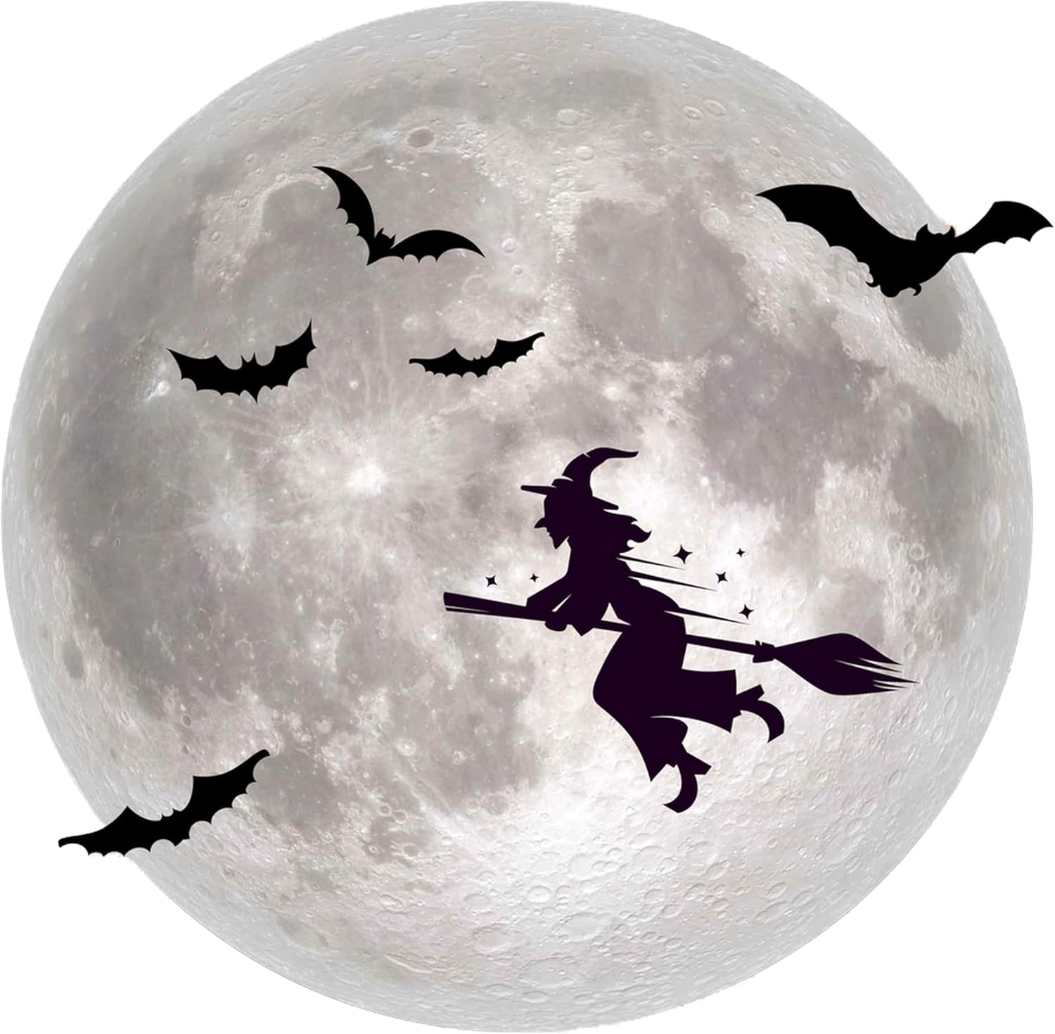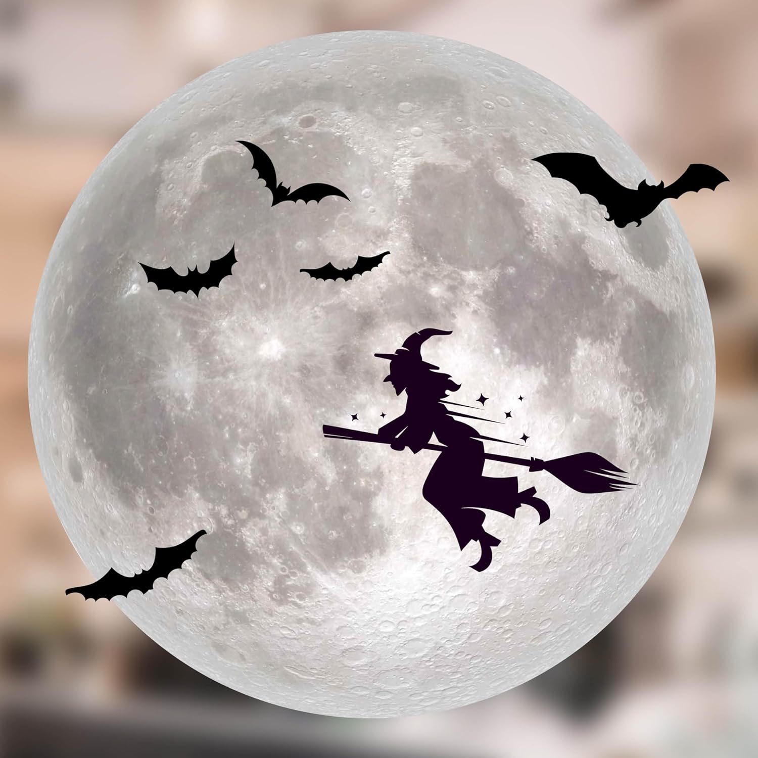Halloween Clings for Glass Windows - 8" x 8" Moon Decal - Witch Silhouette - Halloween Decorations