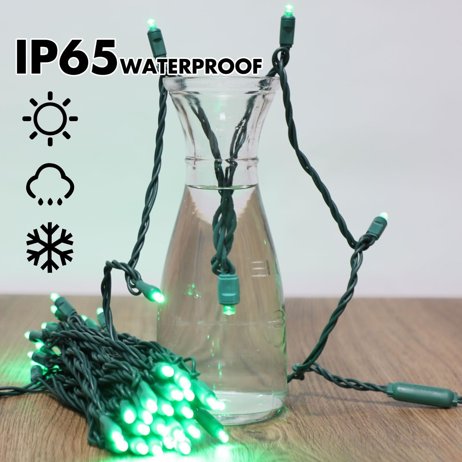 - One-Piece 5MM Commercial Decoration LIGHTS : 100ft 200 LED Lights (50 Lights 25ft X4Groups), 6-inch spacing. Green wires have a wide range of uses and are perfectly integrated with green plants or shrubs.no extra adapter is needed,bulbs are cool to touch,with the rectifier,keep the light steady (not twinkle).