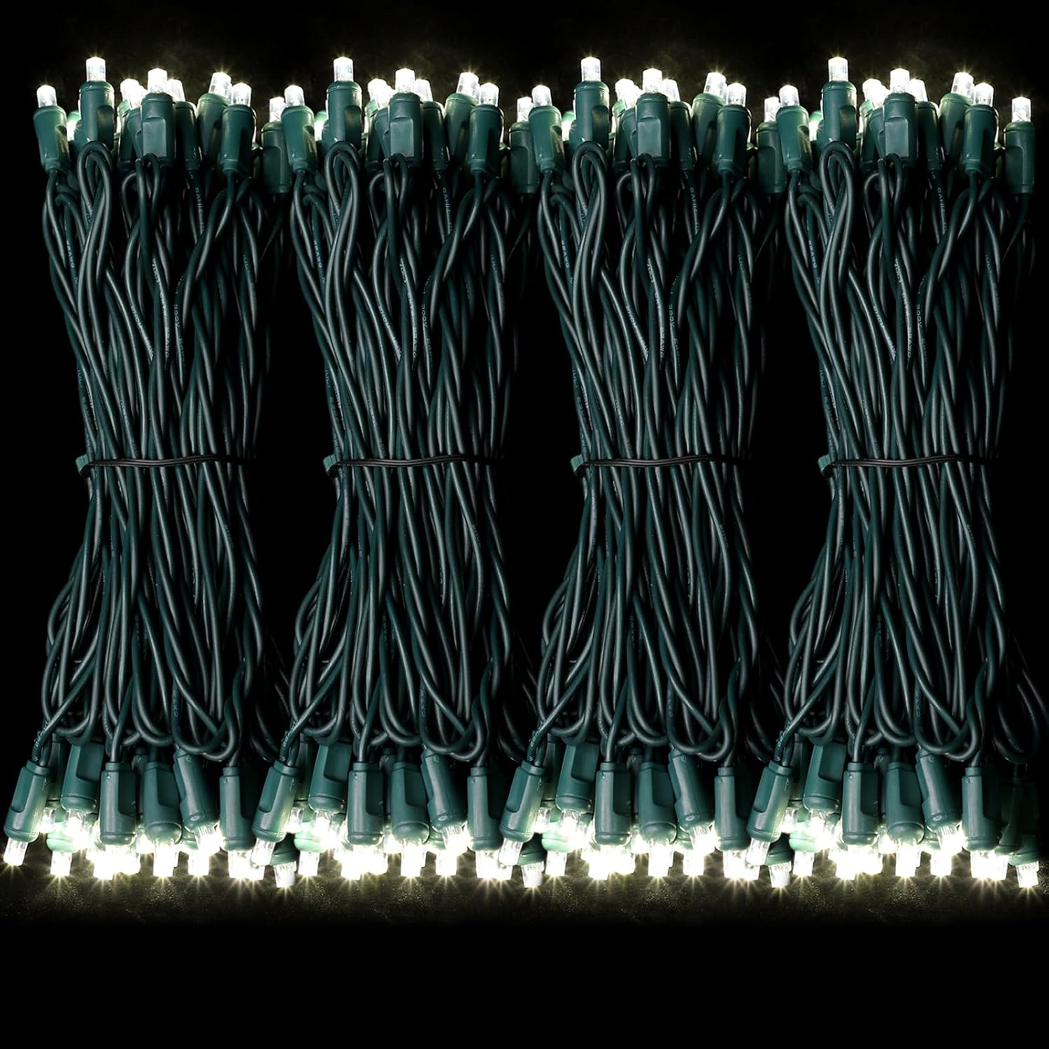 - One-Piece 5MM Commercial Decoration LIGHTS : 300ft 600 LED Lights (50 Lights 25ft X12Groups), 6-inch spacing. Green wires have a wide range of uses and are perfectly integrated with green plants or shrubs.no extra adapter is needed,bulbs are cool to touch,with the rectifier,keep the light steady (not twinkle).