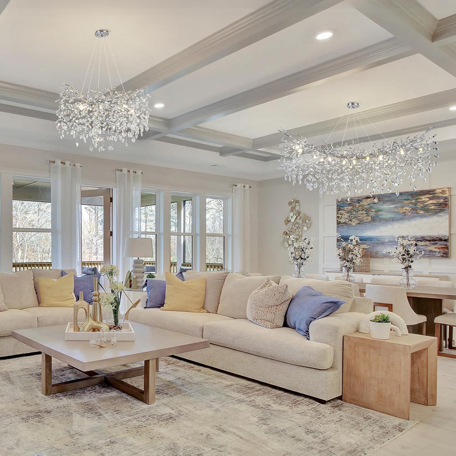Modern Round Crystal Chandeliers, 30" Crystal Chandeliers for Dining Room,Silver Tree Branches Chandelier, for Living Room,High Ceiling,Foyer,Entryway,Kitchen Island
