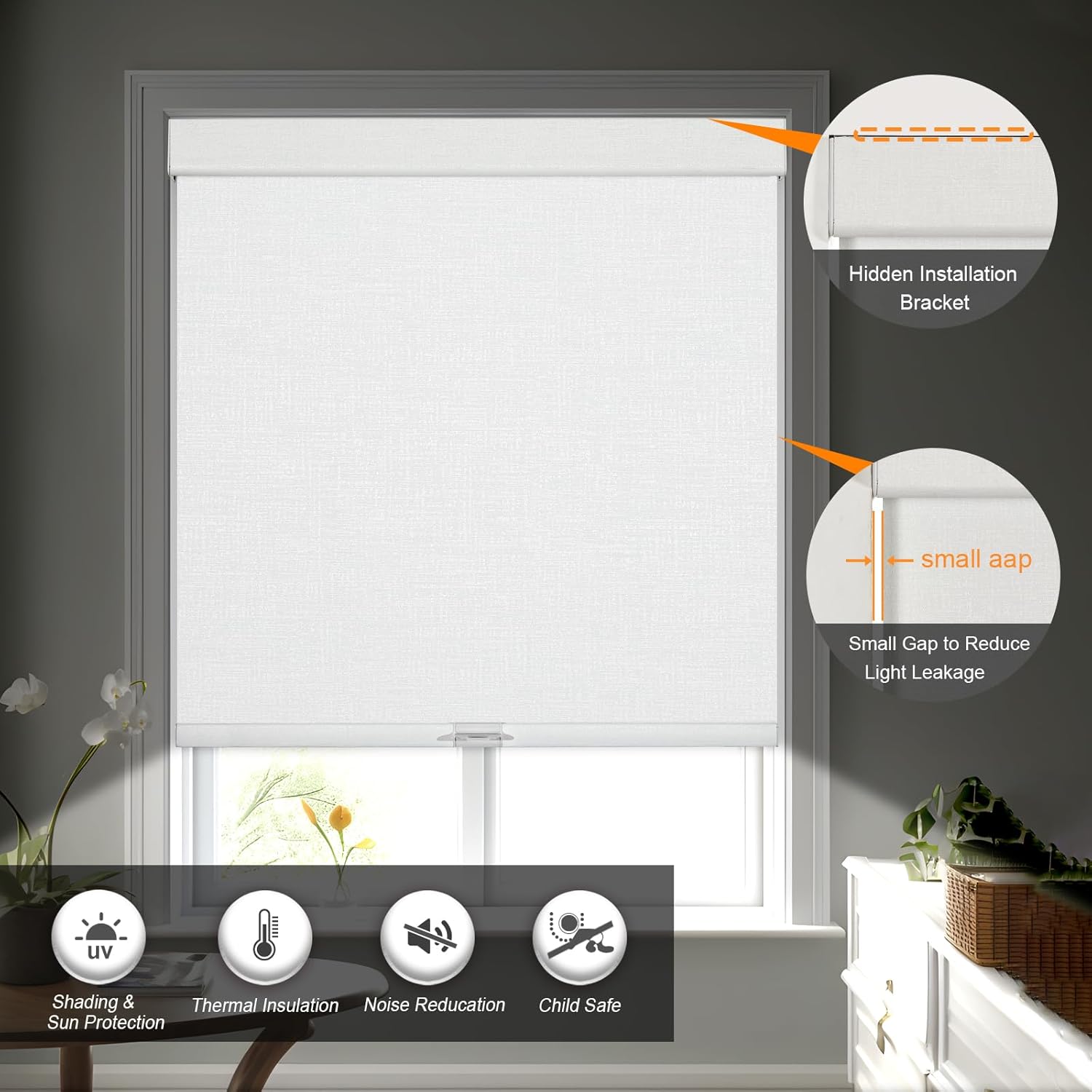 - [COLOR UNITY]: Our Roller blinds use the new valance, it is wrapped in fabric of the same color as the shade as well as the lower rod, the shades uniform in color and makes the room more harmonious and beautiful. This cordless shades made of blackout jacquard fabric which can filter light, protect UV rays and heat insulation.In addition, instead of plastic brackets, our upgraded metal brackets are more durable and make the fabric closer to the window so as to ensure a better shading.