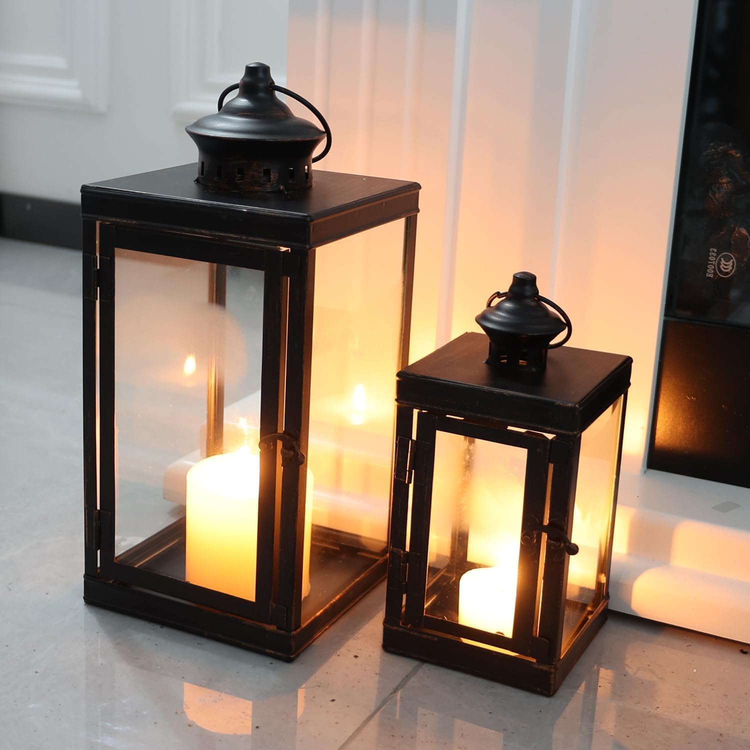 - LANTERNS DECORATIVE INDOOR&OUTDOOR - This charming lantern will suit both indoor & outdoor decor. You can decorate your front porch with this lantern, whether it looks great on a tabletop or on the porch step. Or place it on your doorway path to illuminate your path and entrance. Lanterns can be displayed indoors or outdoors under a covered area. Ideal as an indoor decoration too, use it to decorate your shelf, fireplace, windowsill, living room, or dinner party to add a warm touch to your home.