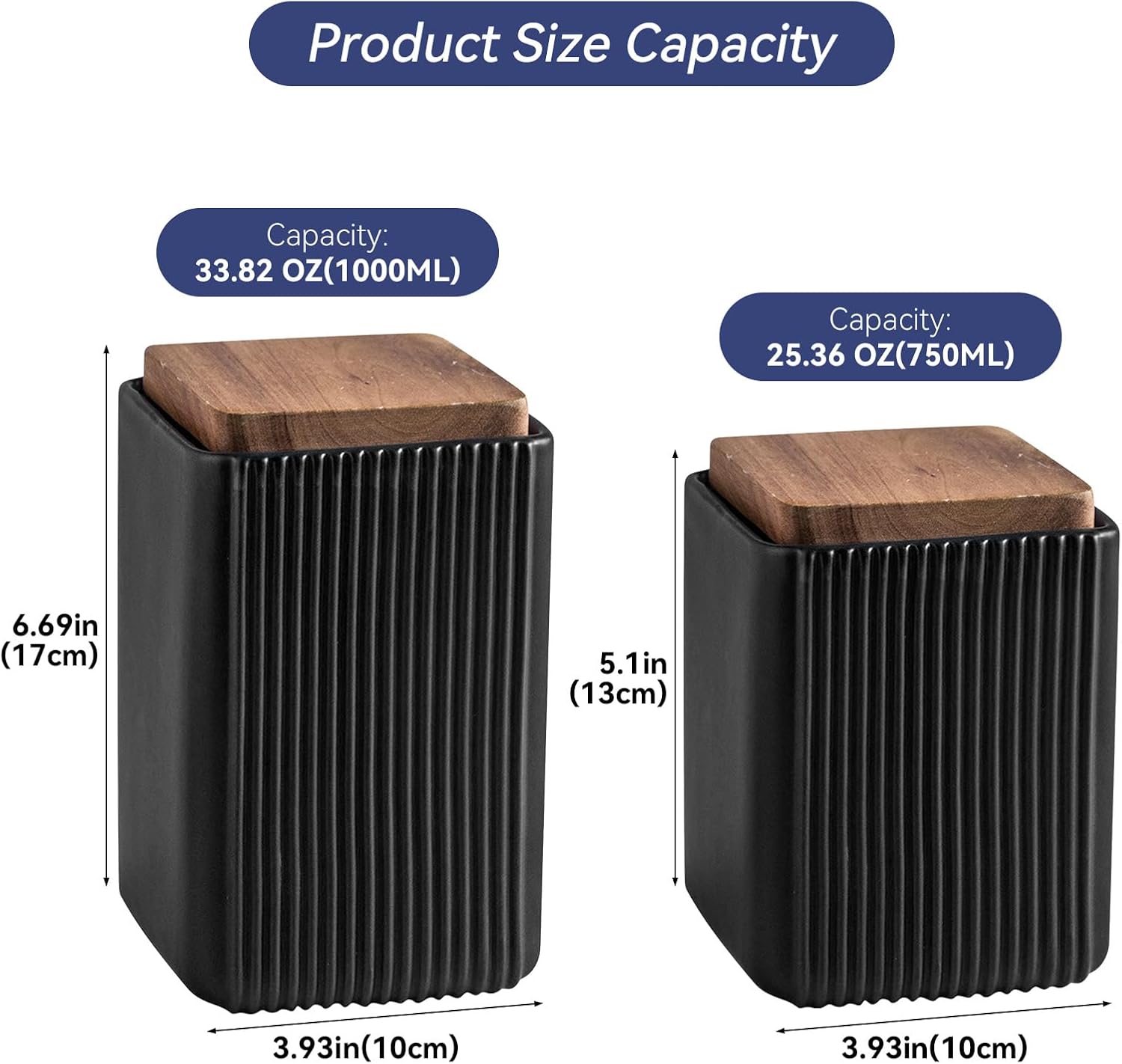 - DIMENSIONS: 3.9 Inches * 3.9 Inches * 5.1 - 6.7 Inches; Capacity: 25-33 Fl Oz(750ML-1000ML) fluids Or Our 750ml jars hold approximately 0.39-0.66 lbs and our 1000ml jars hold approximately 0.77-1.10 lbs of beans, depending on the roast level.; Our Food Storage Jars Come In A Total Of 2 Sizes And Shapes, Each Catering For Your Different Capacity Food Storage Needs.