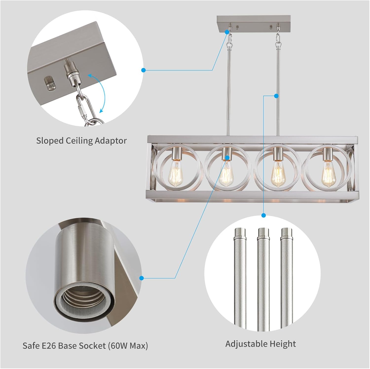 - MODERN LINEAR CHANDELIER: The open-cage farmhouse dining room light fixture features a rectangle frame in distressed brushed nickel finish metal with cage design recalling reminiscent of classic, costal and contemporary style. Perfect for home lighting or commercial lighting.