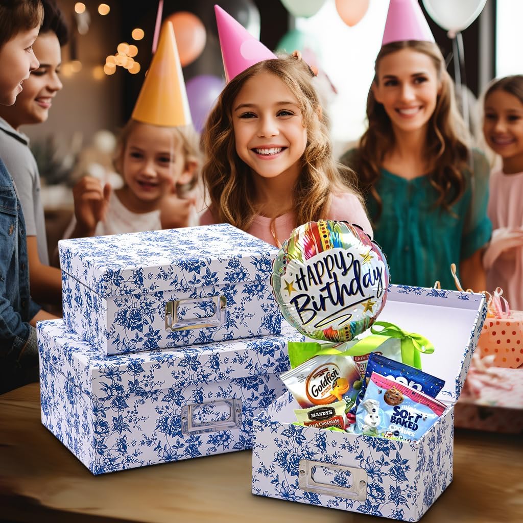 - BEAUTIFUL DECORATIVE BOXES: The blue and white porcelain design adds a touch of traditional elegance to any space. With their intricate patterns and classic color combination, these storage boxes serve as decorative accents that enhance the overall aesthetic of your home, weddings, or party decor.