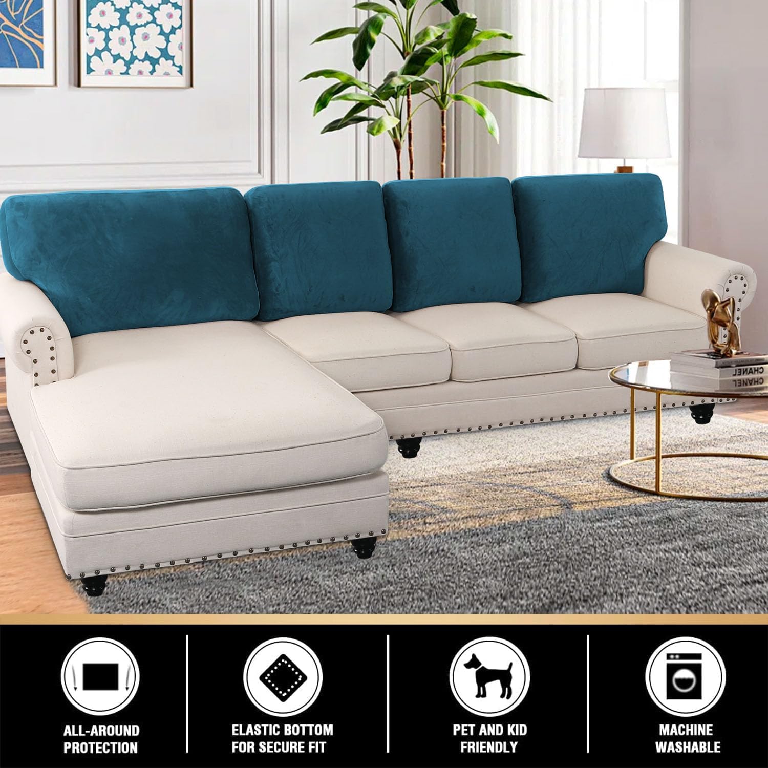 PrinceDeco Sectional Couch Covers Velvet Cushion Covers for Sectional Couch Washable Cushion Covers for Sectional Sofa Pet Friendly Sectional Sofa Slipcovers(1 Chaise Back+ 3 Sofa Back,Deep Teal)
