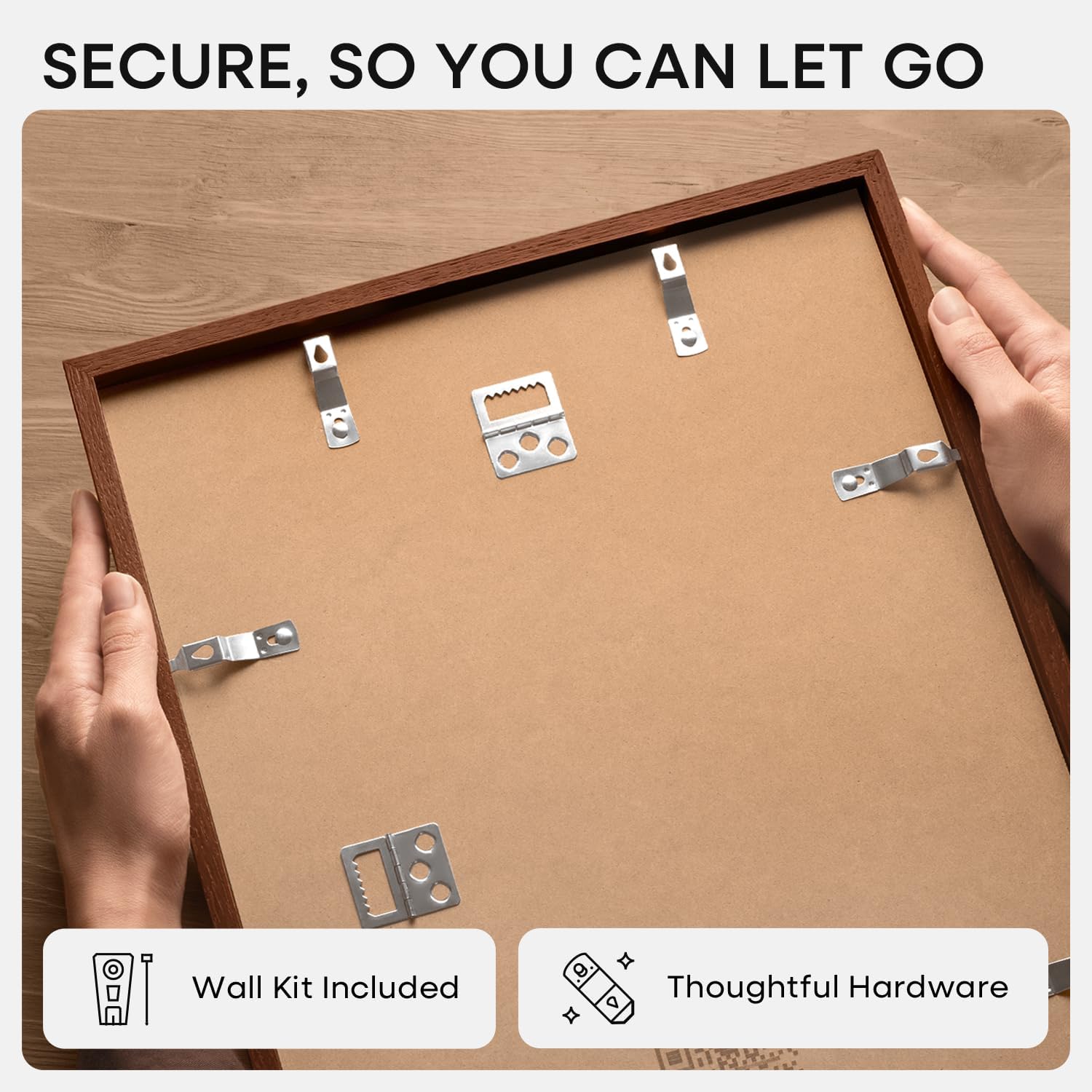 Homeforia 16x20 Picture Walnut Frame, High End Dark Oak 16x20 Wooden Brown Frames with Mat 11x14, 16 x 20 Wood Poster Frame Matted to 11 by 14, 20x16 Hanging Frames, Tempered Glass, Wall Kit, Set of 1