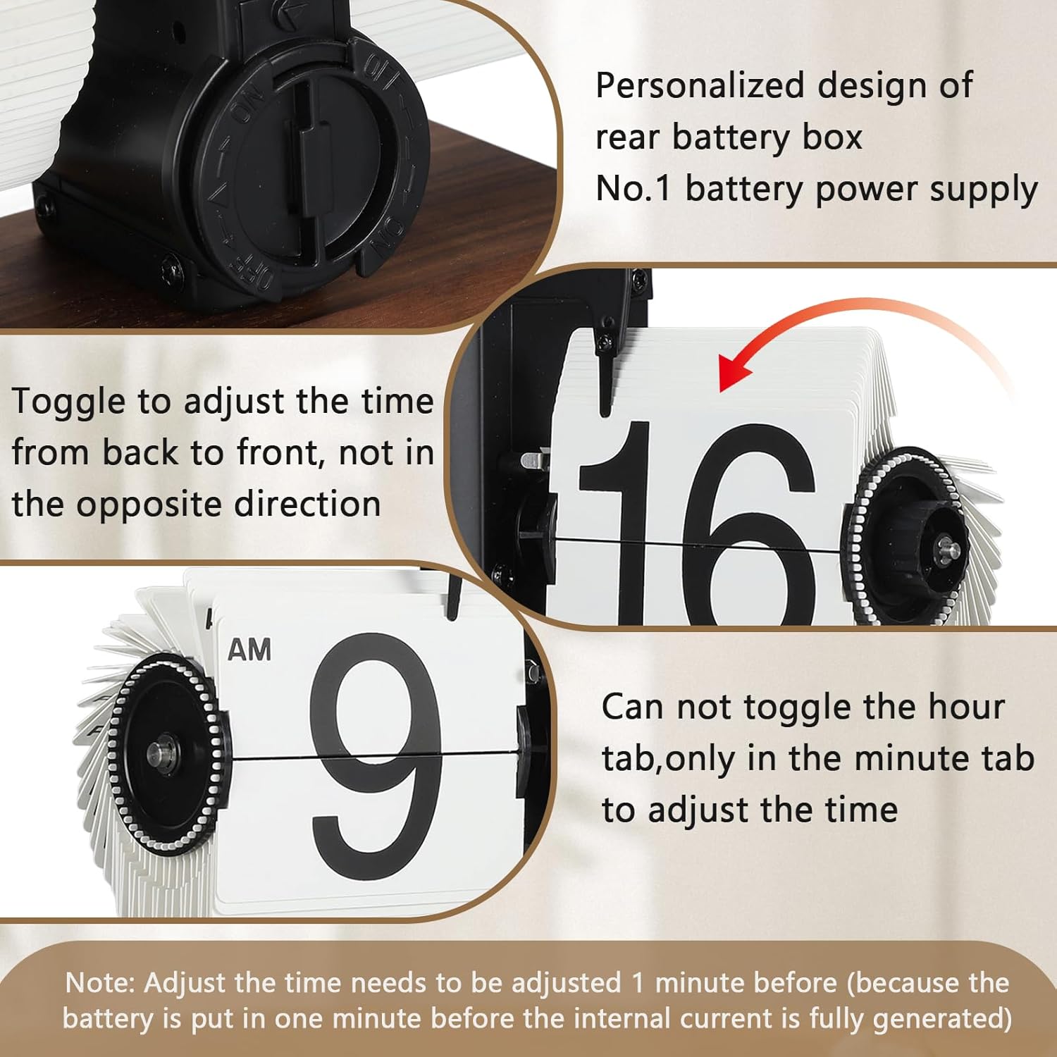 - PRACTICAL DESIGN: A rotary knob is set on the right side of the minute hand area, which is convenient for you to adjust the time at any time. And the base has a non slip pad design, can be placed on the desktop smoothly.