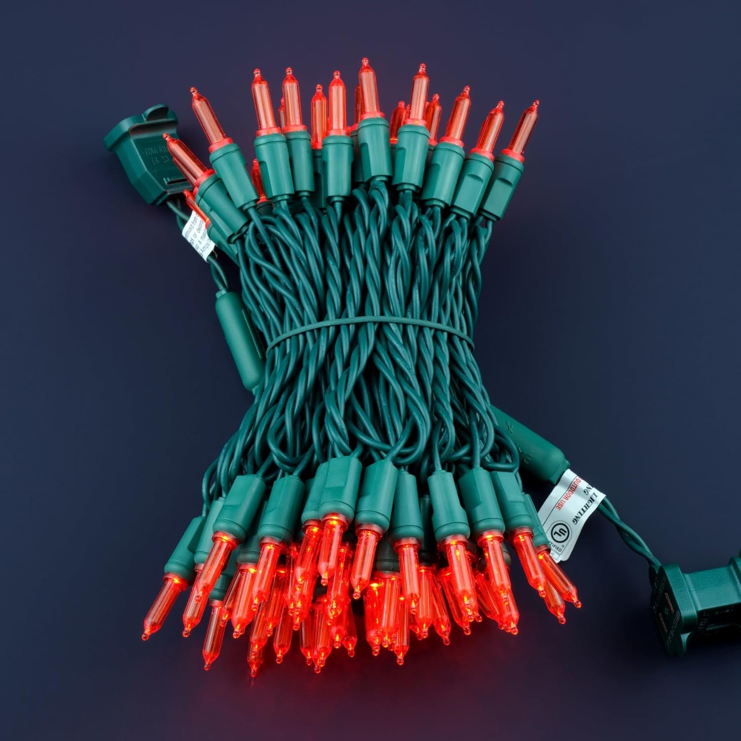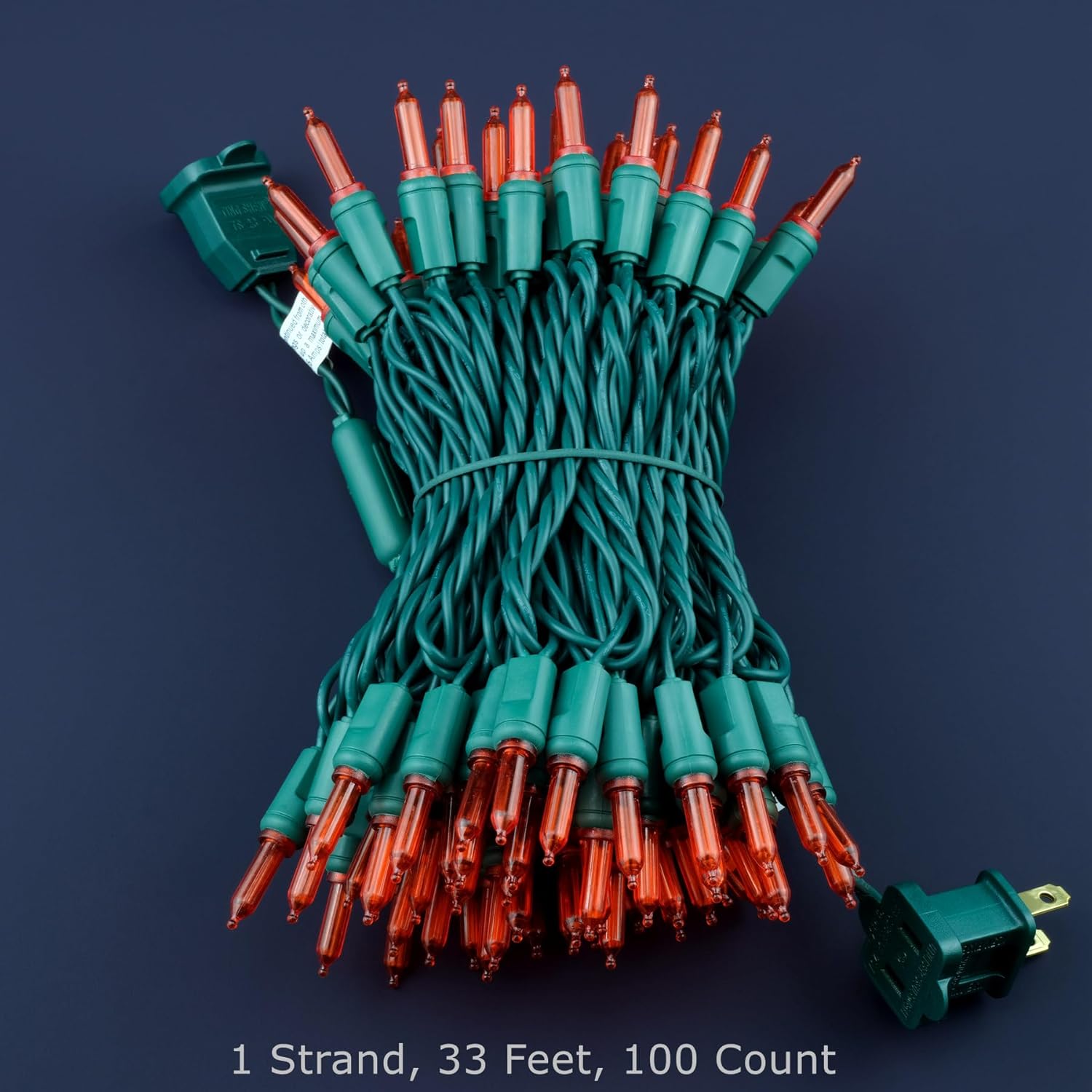 - SPECIFICATIONS ☀ Each pack contains 1 strands of one-piece string lights, total length 33 feet with 100 count red mini lights. 22 AWG green cord, 4" lead, 4" spacing, 4" tail.
