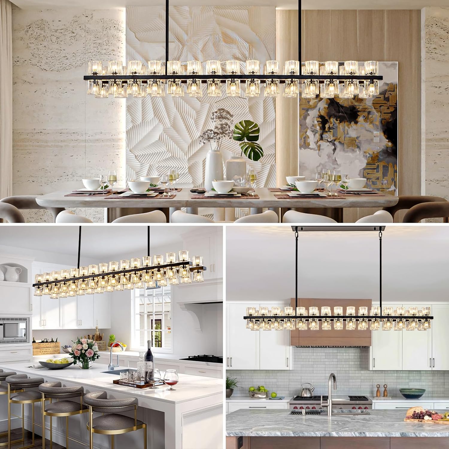 - Wide Application: Ideal for various settings in your home, including restaurants, kitchen island, bathrooms, stairs, bedrooms, living rooms, libraries, foyers, hallways, and dining rooms, this rectangle farmhouse chandelier complements any decor style. It supports various ceiling types, including flat and sloped ceilings.