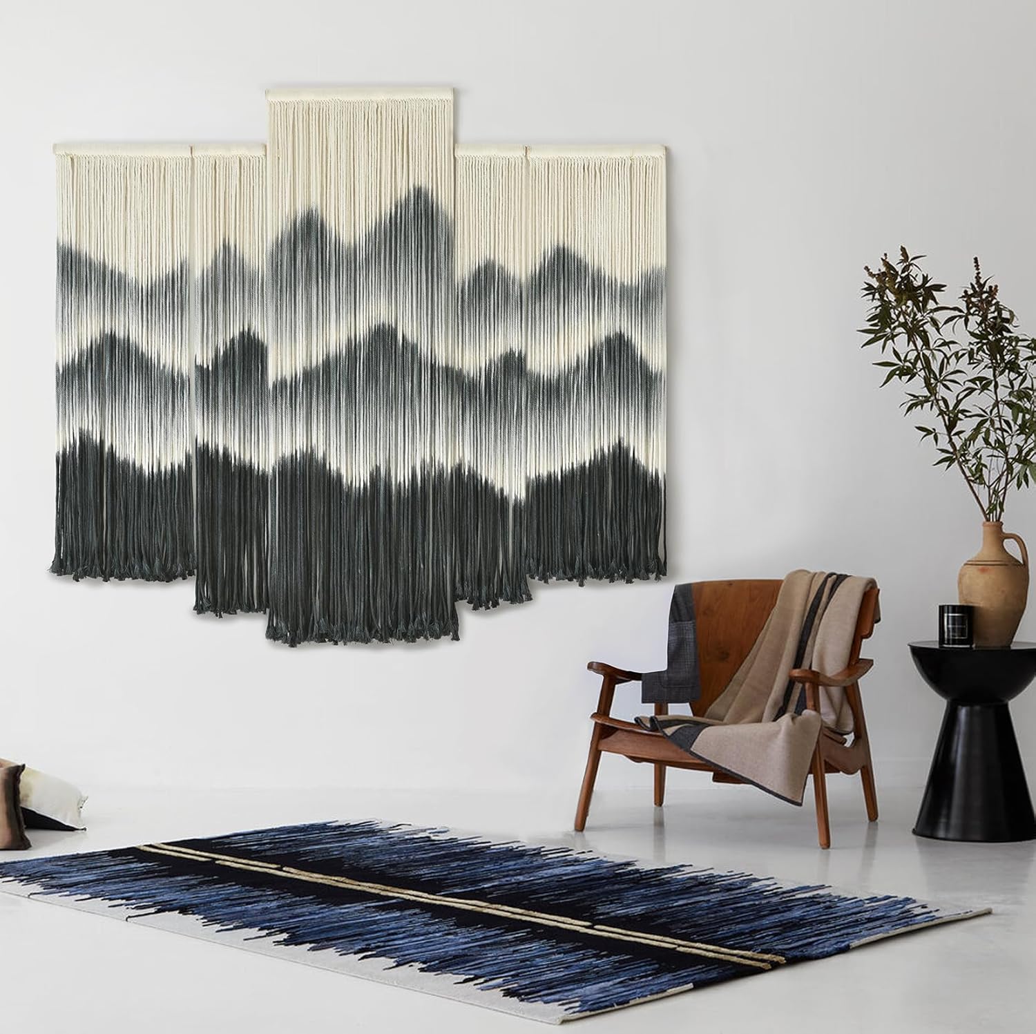 IOWER Large Macrame Wall Hanging 5Pcs Handmade Dip-Dyed Mountain Wall Decor Combination Suspension Bedroom Living Room Modern Fiber Yarn Wall Art