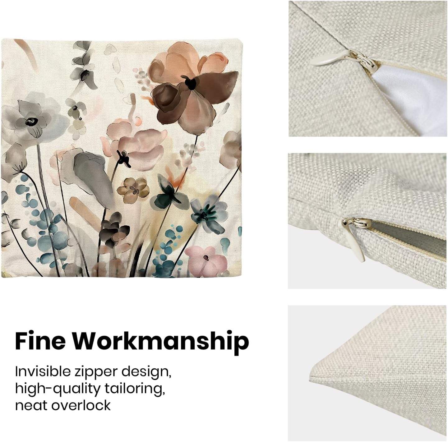 - 【Square Pillow Covers Size】 Watercolor flowers pillow case set includes 2 pcs of farmhouse couch pillow covers (NO Pillow). Home decor farmhouse pillow covers measures 18x18 inch/ 45x45 cm. All the watercolor floral decor throw pillow covers have a hidden zipper. It is easy to insert or remove the pillow core to replace the spring pillowcase. Easy to clean and wash, durable and not easy to damage.