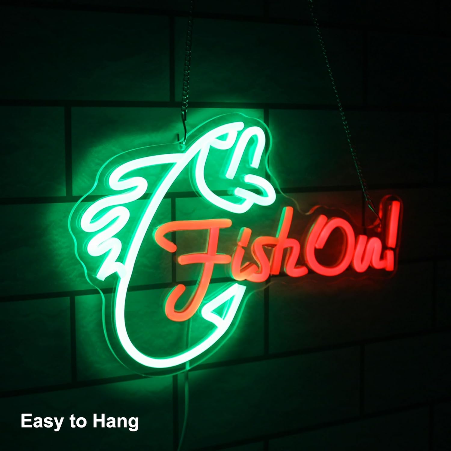 - 【Fish On Neon Sign】This neon light features a design with a green fish body and the red letter "Fish On". Lighting up fishing neon lights signs not only illuminates your room but also adds a fun and enjoyable atmosphere. Say goodbye to dull walls and light up this cool fish on neon sign.