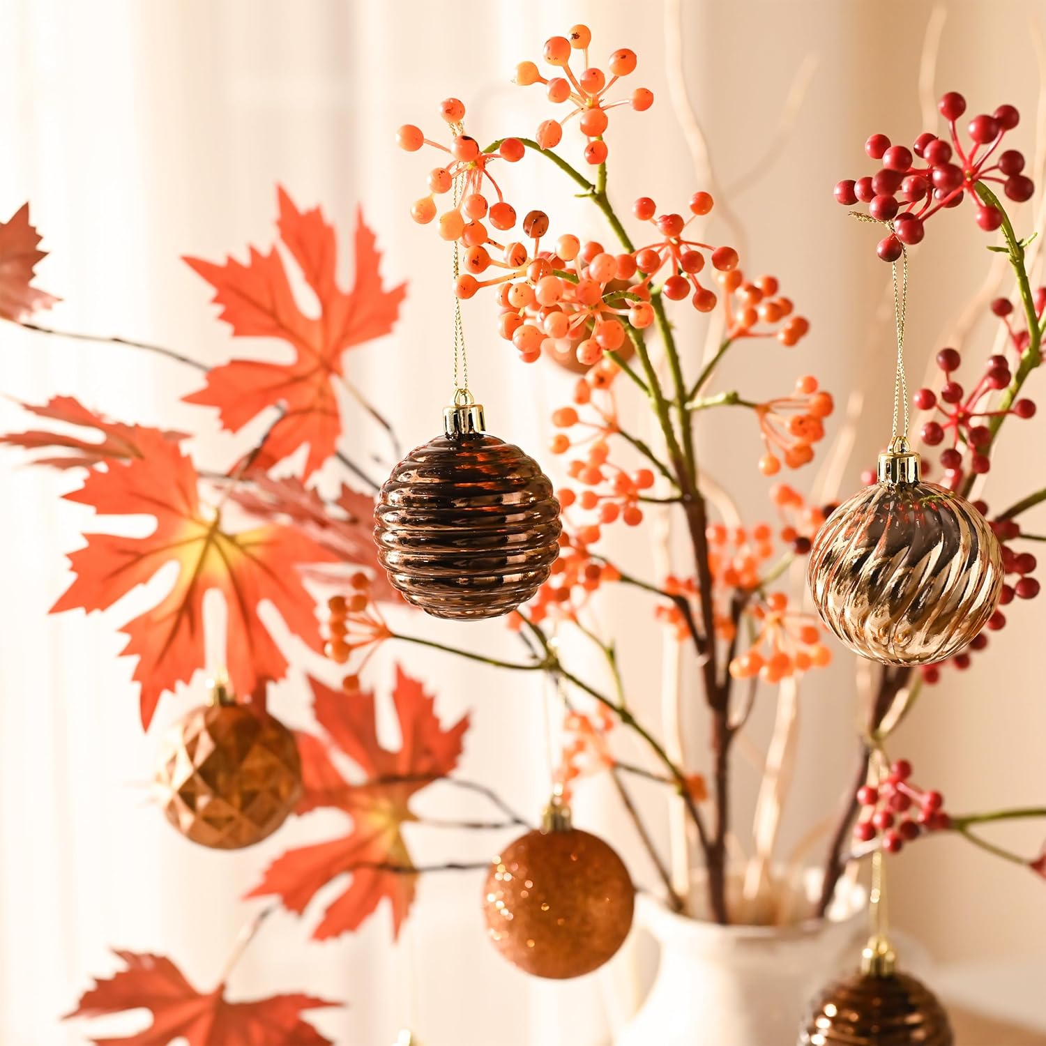 Valery Madelyn Christmas Ornaments Tree Decorations Set for Fall Halloween, 24ct Bronze Copper Brown Gold Shatterproof Ball Ornaments, 2.36" Hanging Ornament Bulk for Xmas Holiday Party Decor