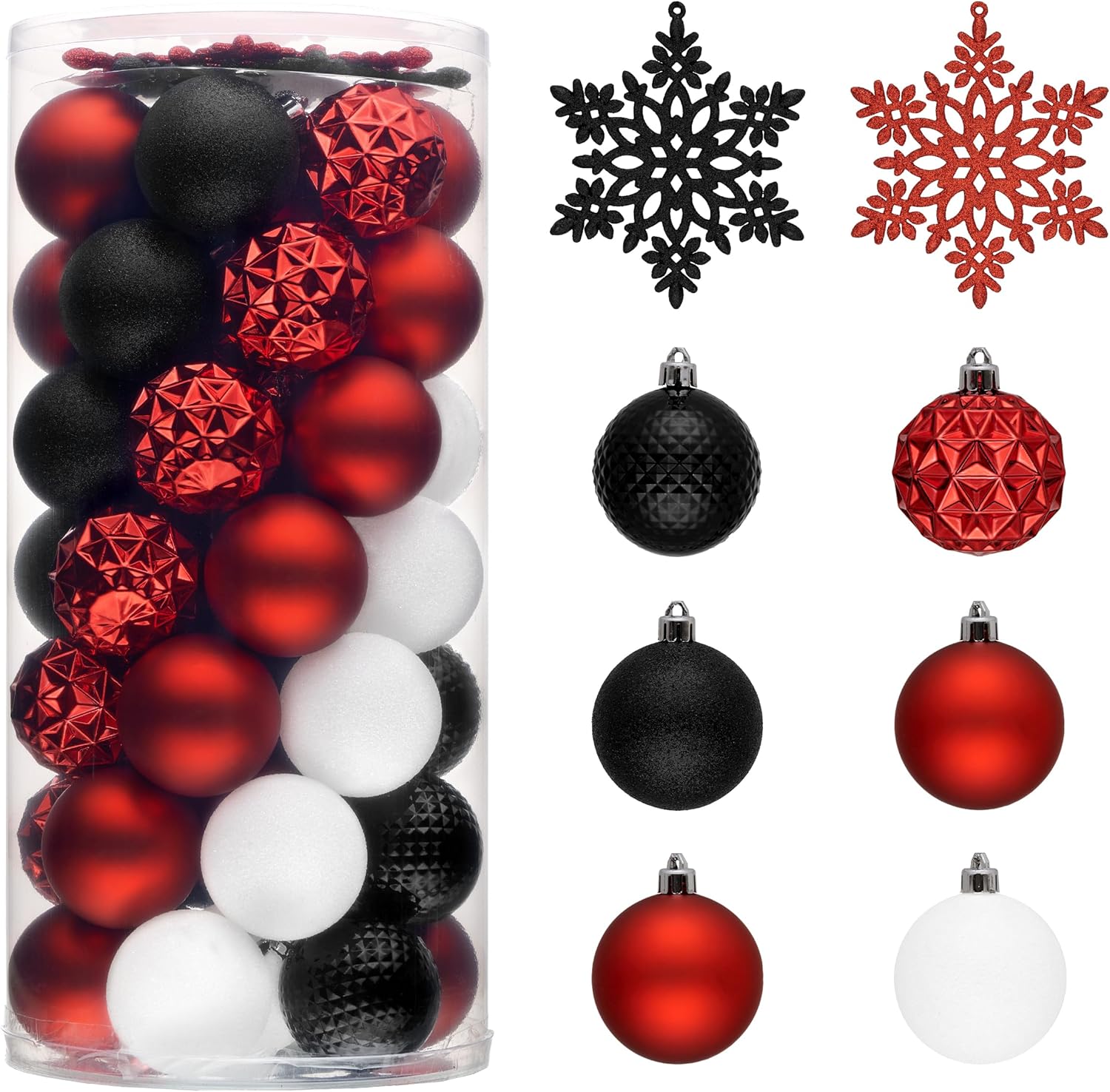 - 【Package and Size】This ornament ball set include 50pcs Christmas ornaments measuring 2.36 inches in diameter, featuring seamless connections for a polished look