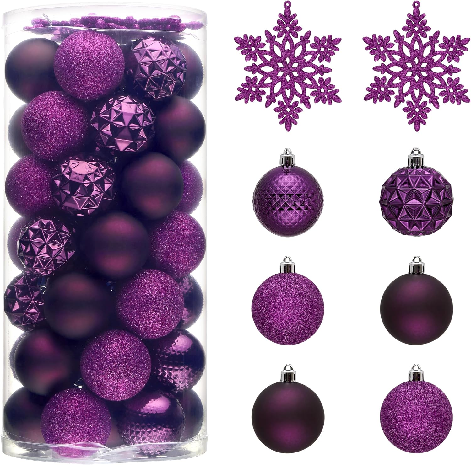 - 【Package and Size】This ornament ball set include 50pcs Christmas ornaments measuring 2.36 inches in diameter, featuring seamless connections for a polished look