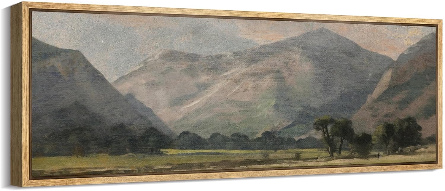 MUDECOR Large Framed Canvas Print Wall Art Pastoral Beauty Classic Mountainous Landscape Illustrations Antique Retro Fine Art Illustrations Decorative Colorful for Bedroom - 60"x20"